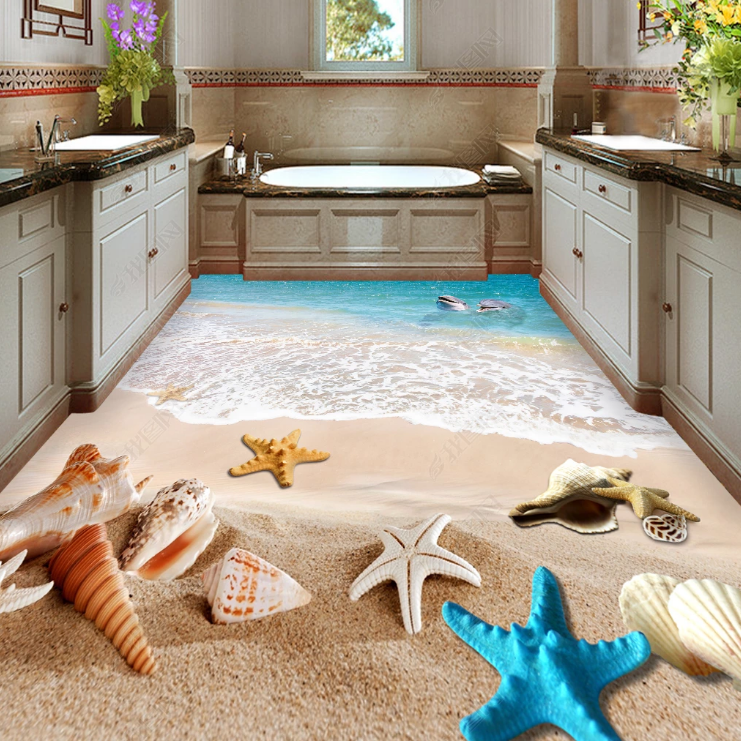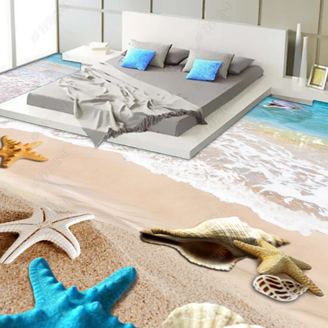 Beach shell stereoscopic 3D floor stickers Living room bedroom powder room store corridor floor tile stickers Waterproof floor decoration