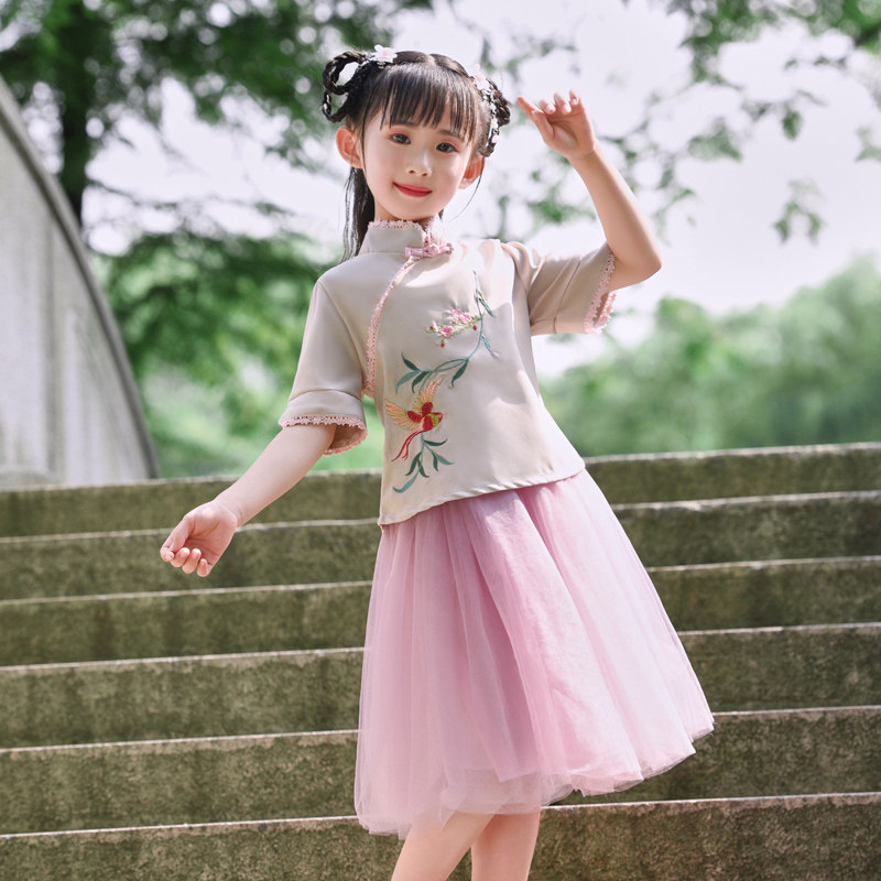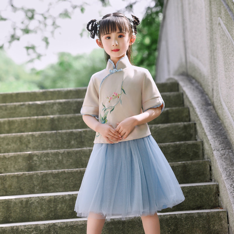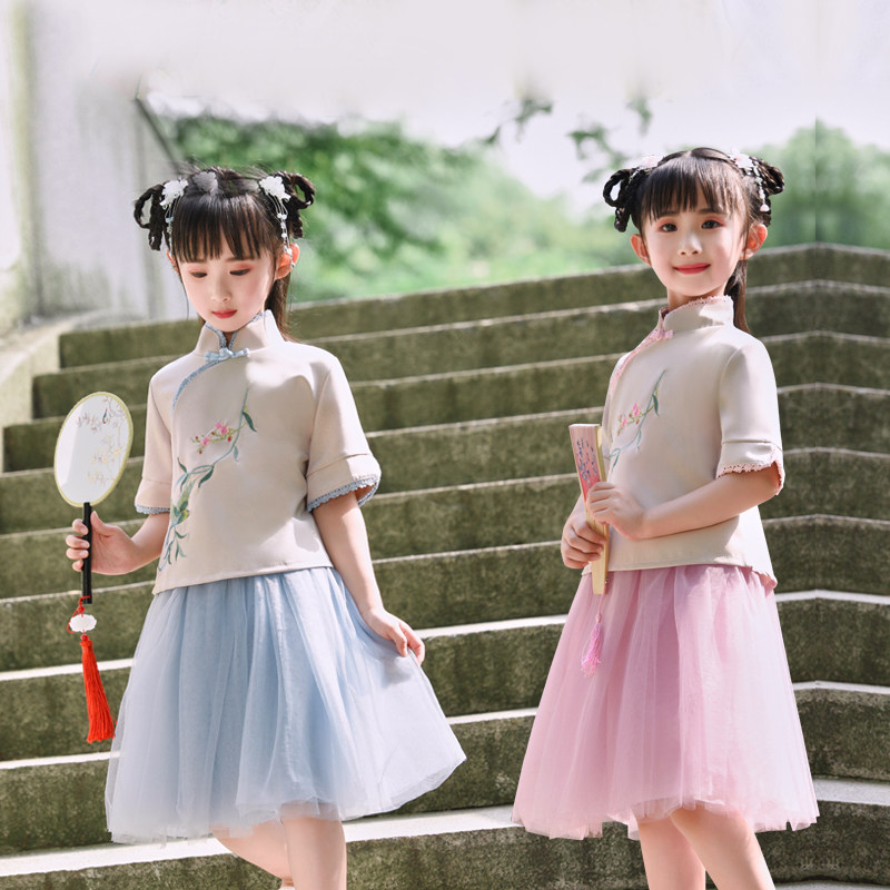 Girls summer Hanfu suit 2019 new baby girl Korean version of the ancient costume skirt children's Tang suit Chinese style skirt