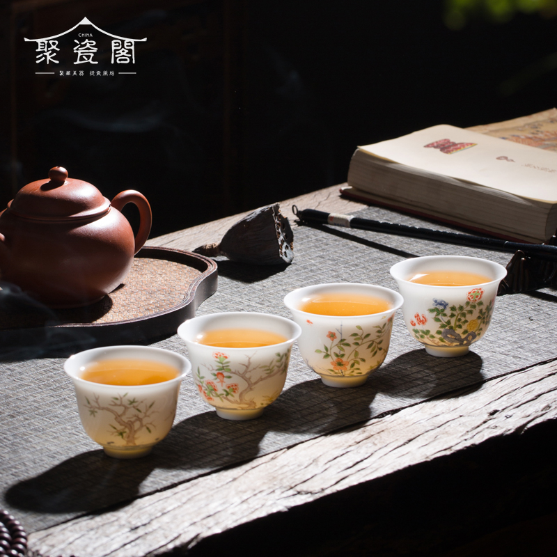 Jingdezhen Ceramic Hand Tea Set Colorful Kangxi XII Huang Cup Kungfu Tea Cup Master Cup Tea Cup