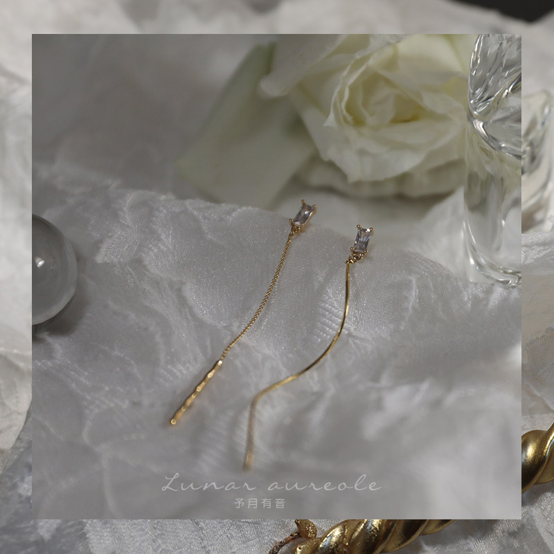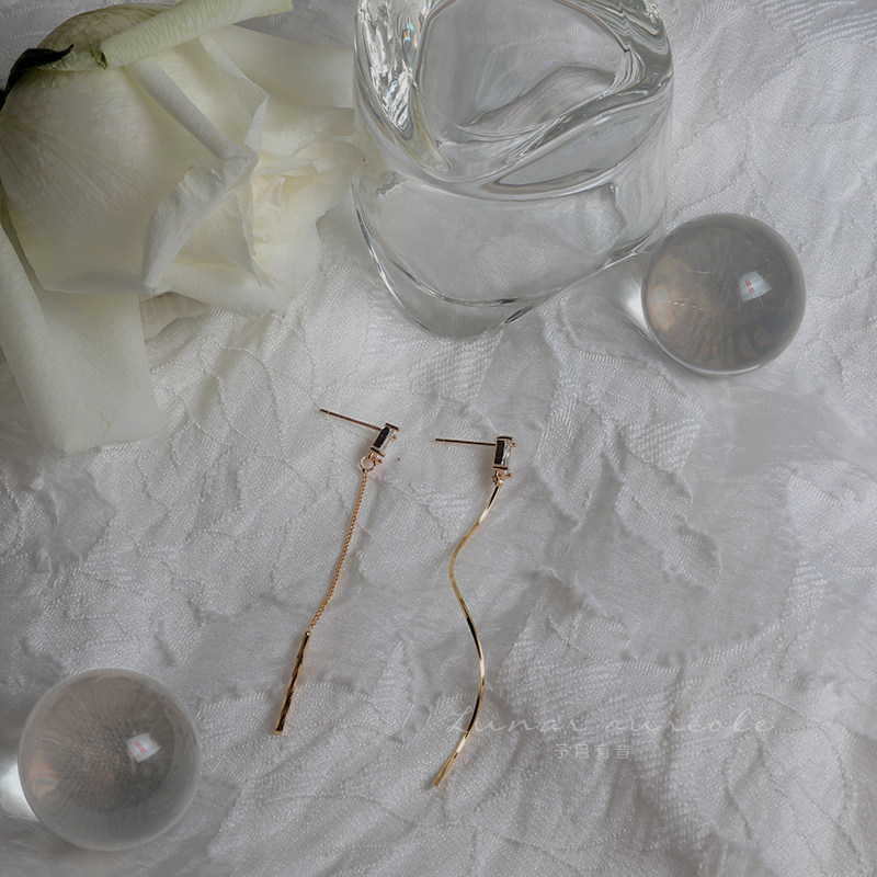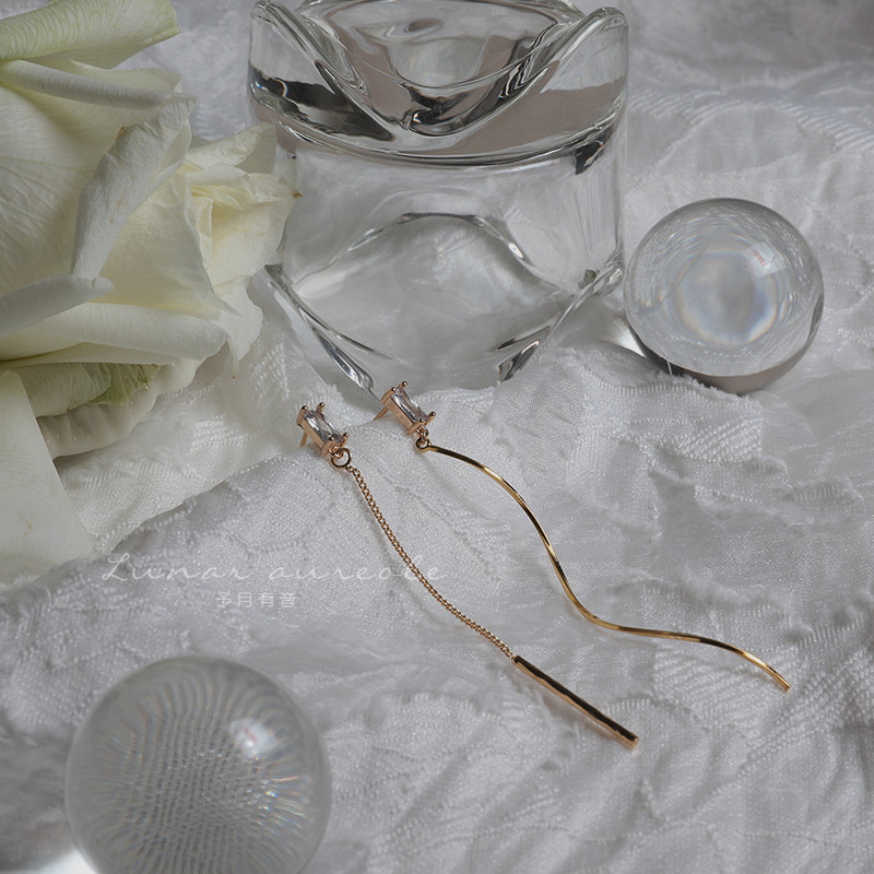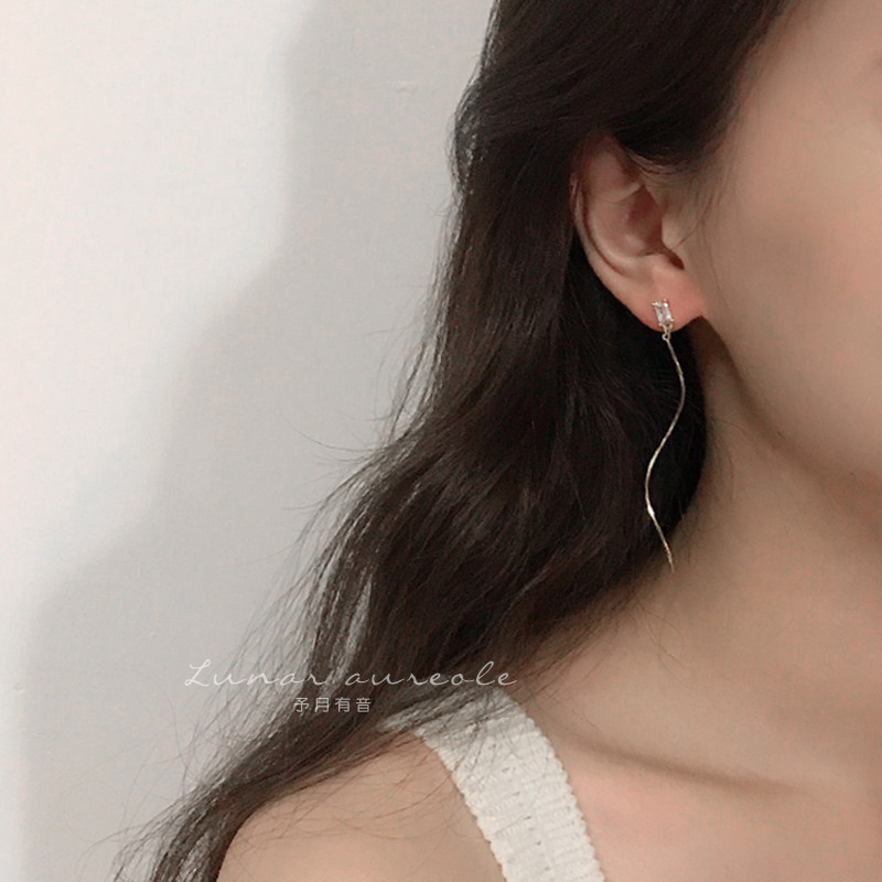 Yuyue Youyu Minimalist zircon wavy line French temperament long version thin face earrings ear pin gift female