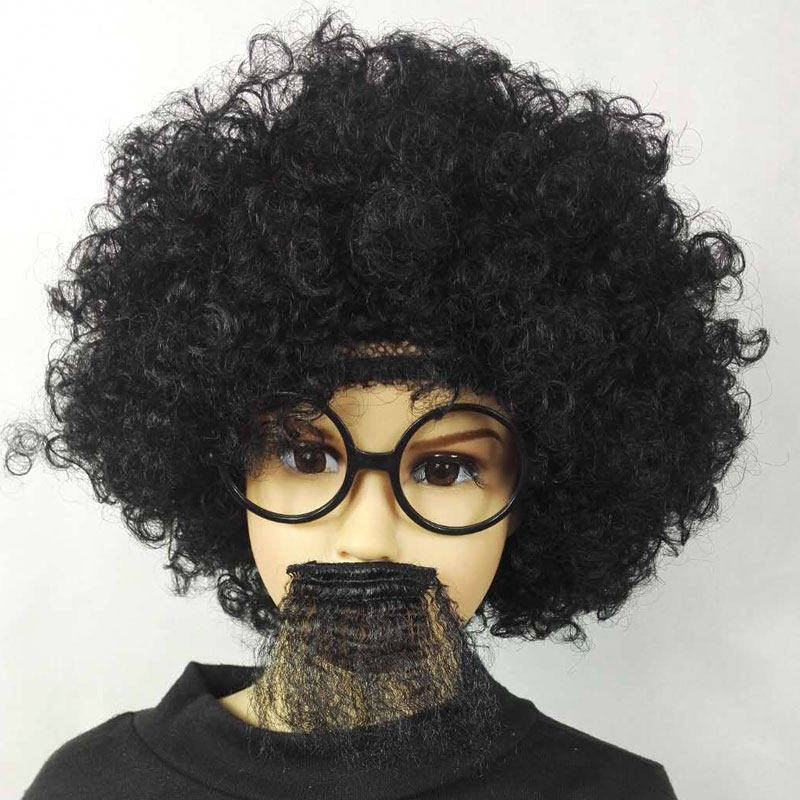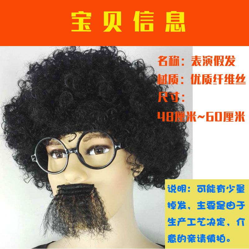 Stage performance grandpa black beard props wig father men dad old man wig explosion head wig