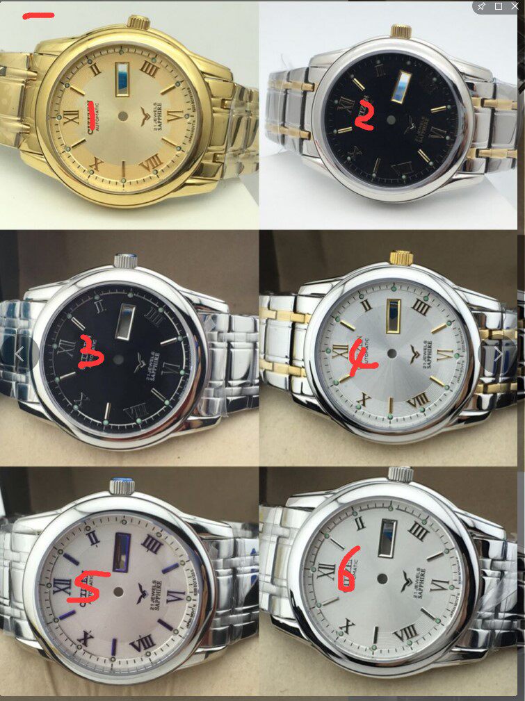 Silver white face silver color black face silver color blue scale gold white face gold black face full gold