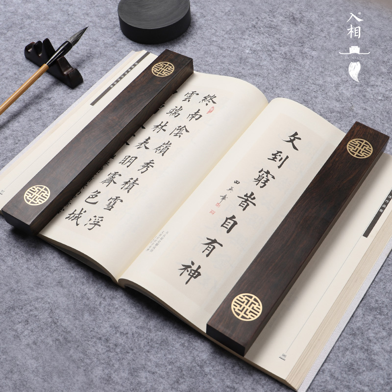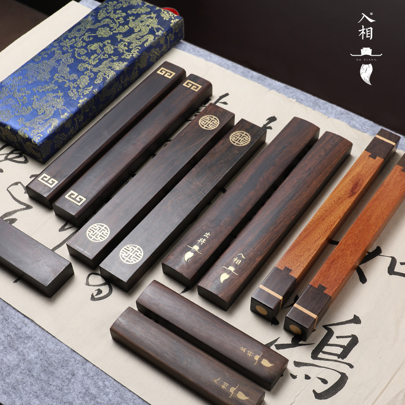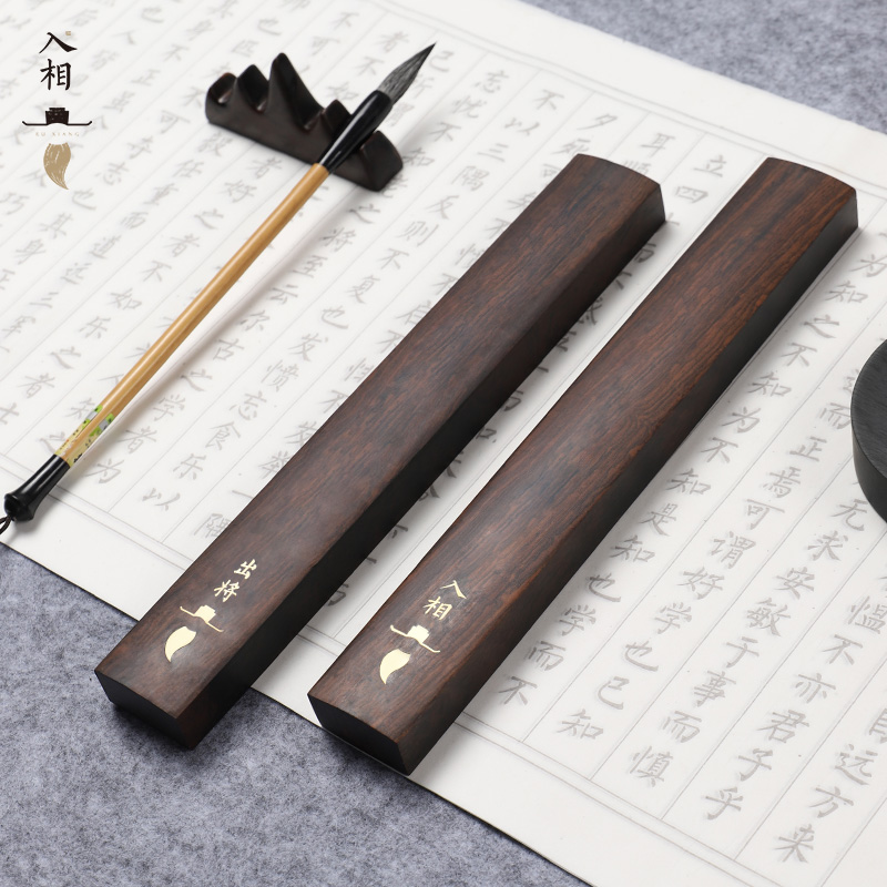 Out-in-phase solid wood brass Town paper Calligraphy Pressed Paper Town Ruler Pair Gift Box Clothes Students Beginners Wenfang Four Treasure Accessories Red Acid Branches Black Catali Wood Insert Bronze Paper Crackdown Book God Instrumental Xiangyun Town Ruler
