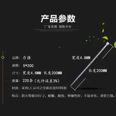Liyuan cable tie 5 * 200mm self-locking nylon cable tie 220 4 8mm plastic cable strap wholesale