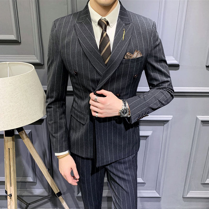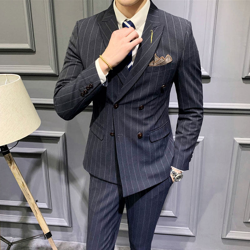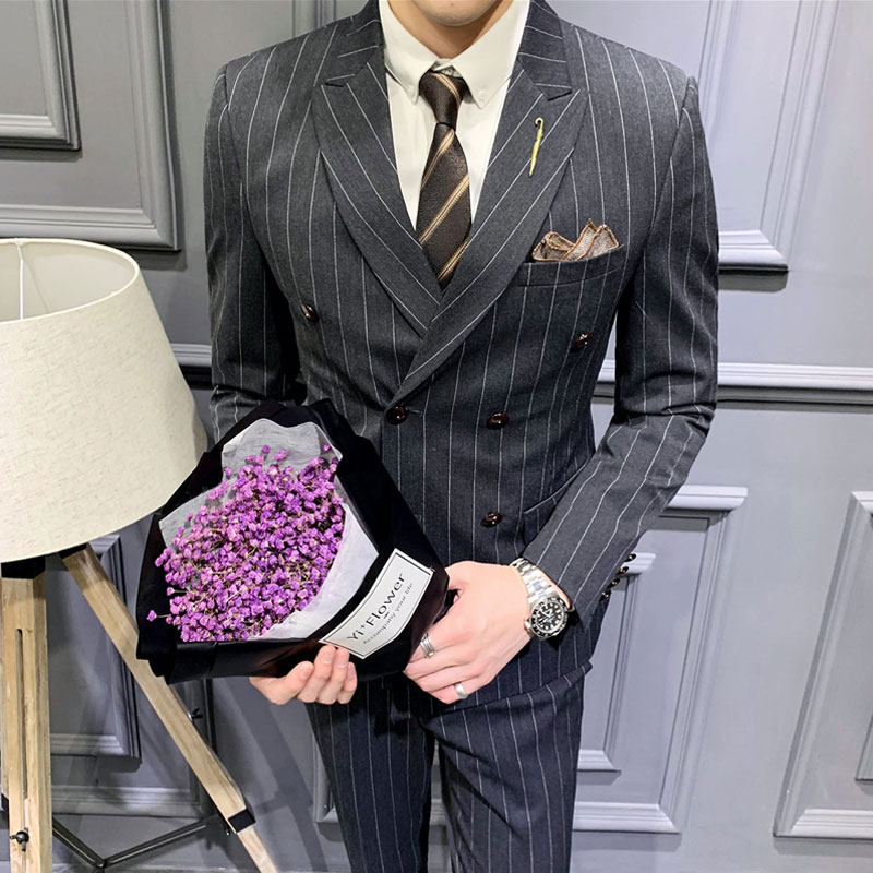 Striped new suit men's suit casual business professional formal suit youth Korean version of a handsome suit trendy
