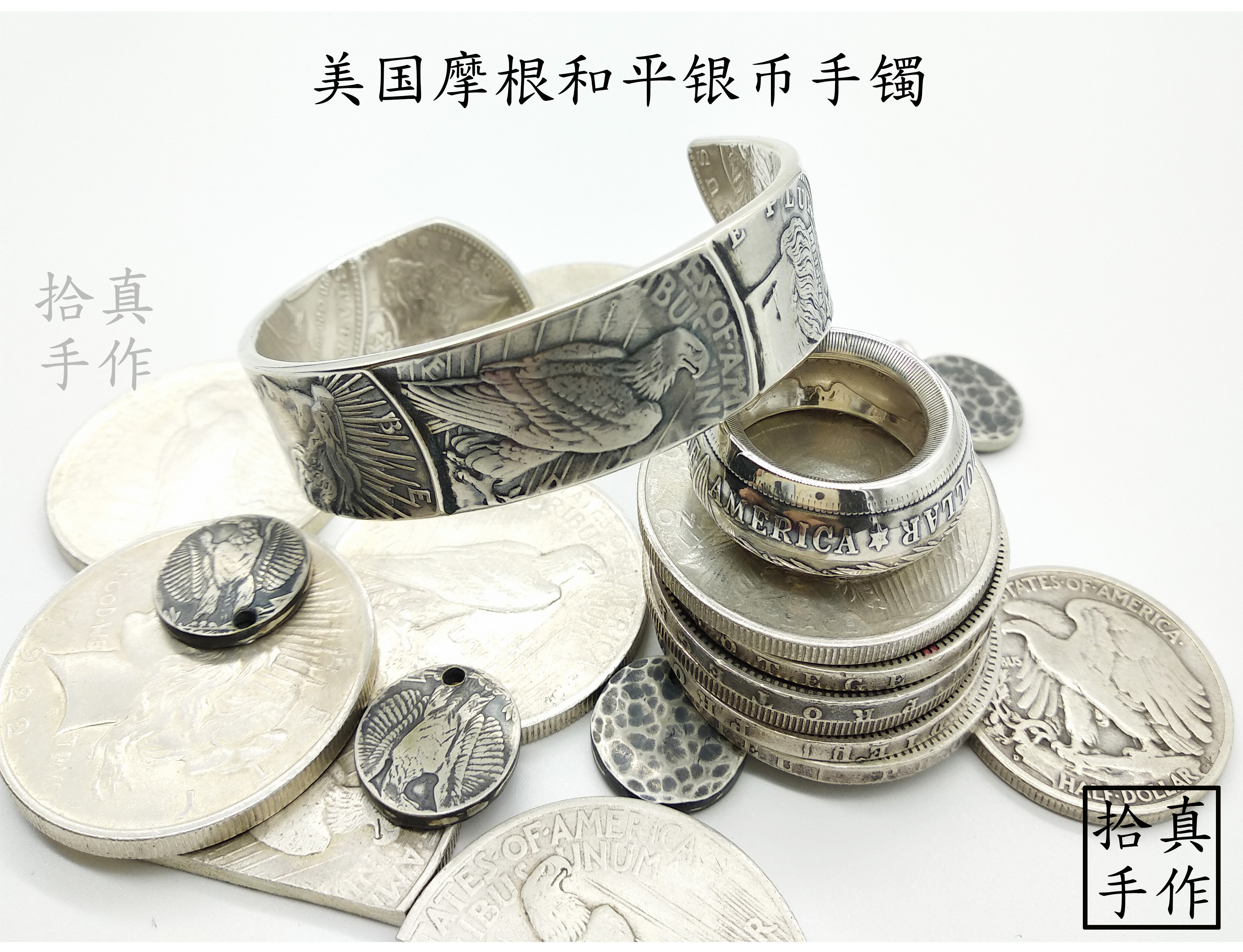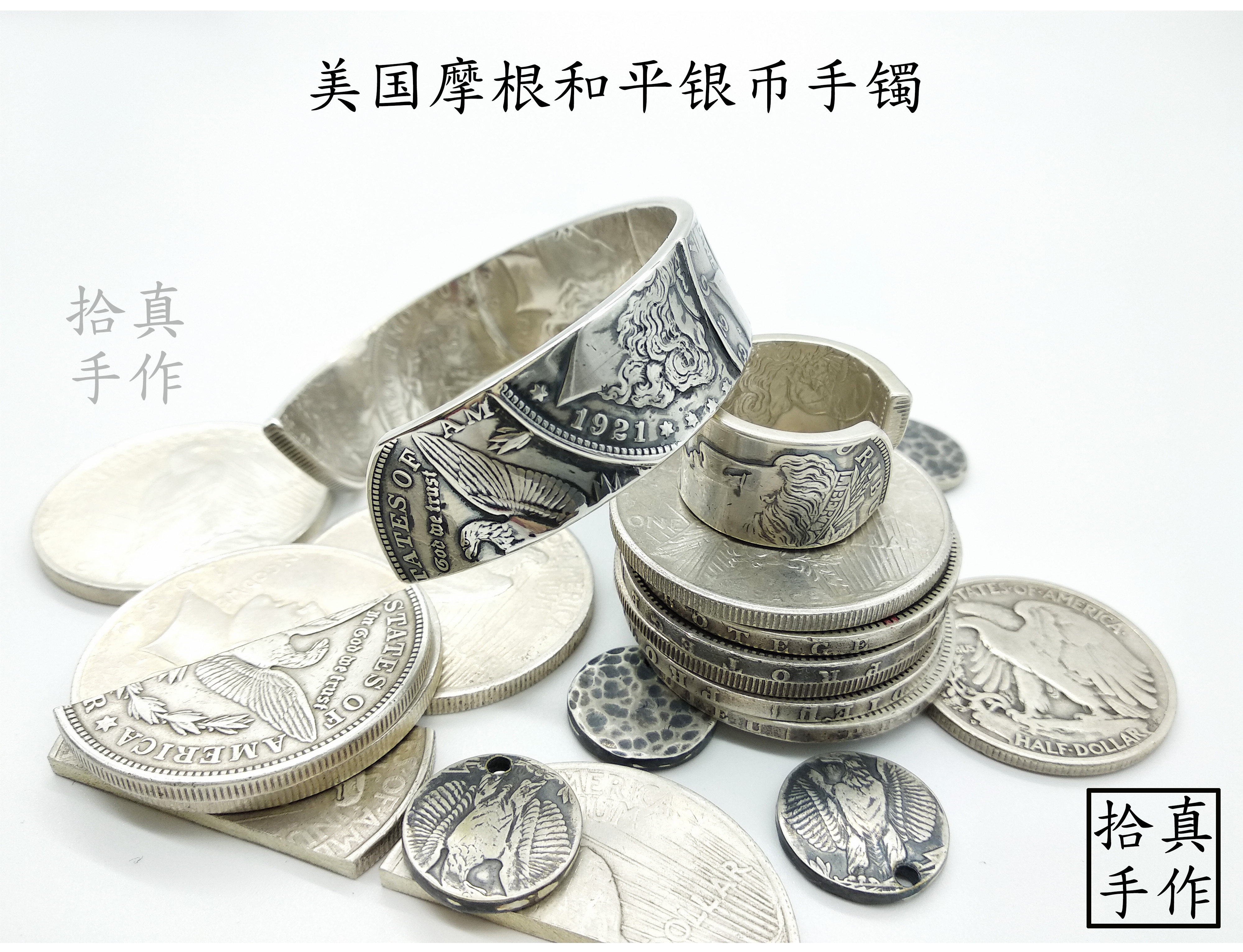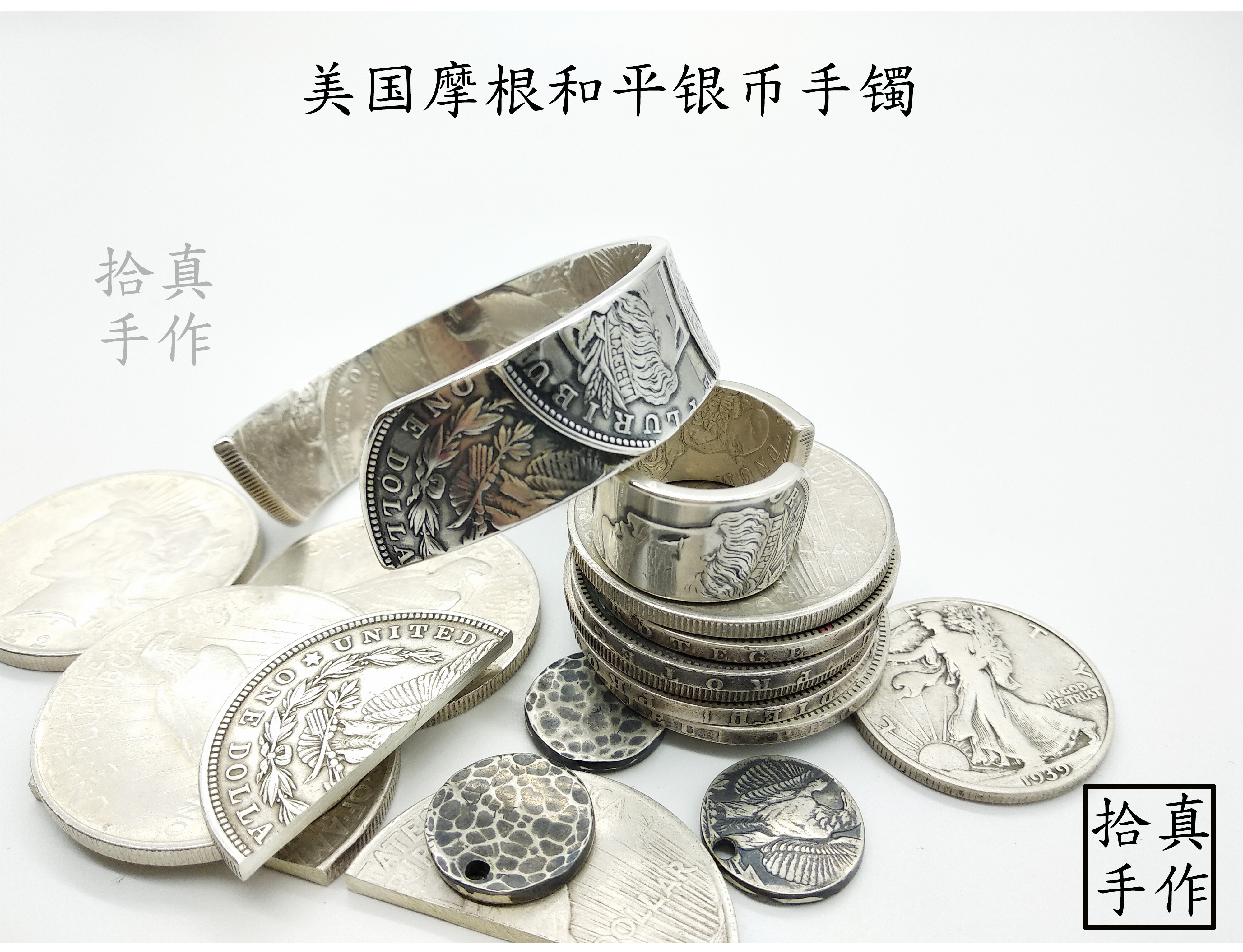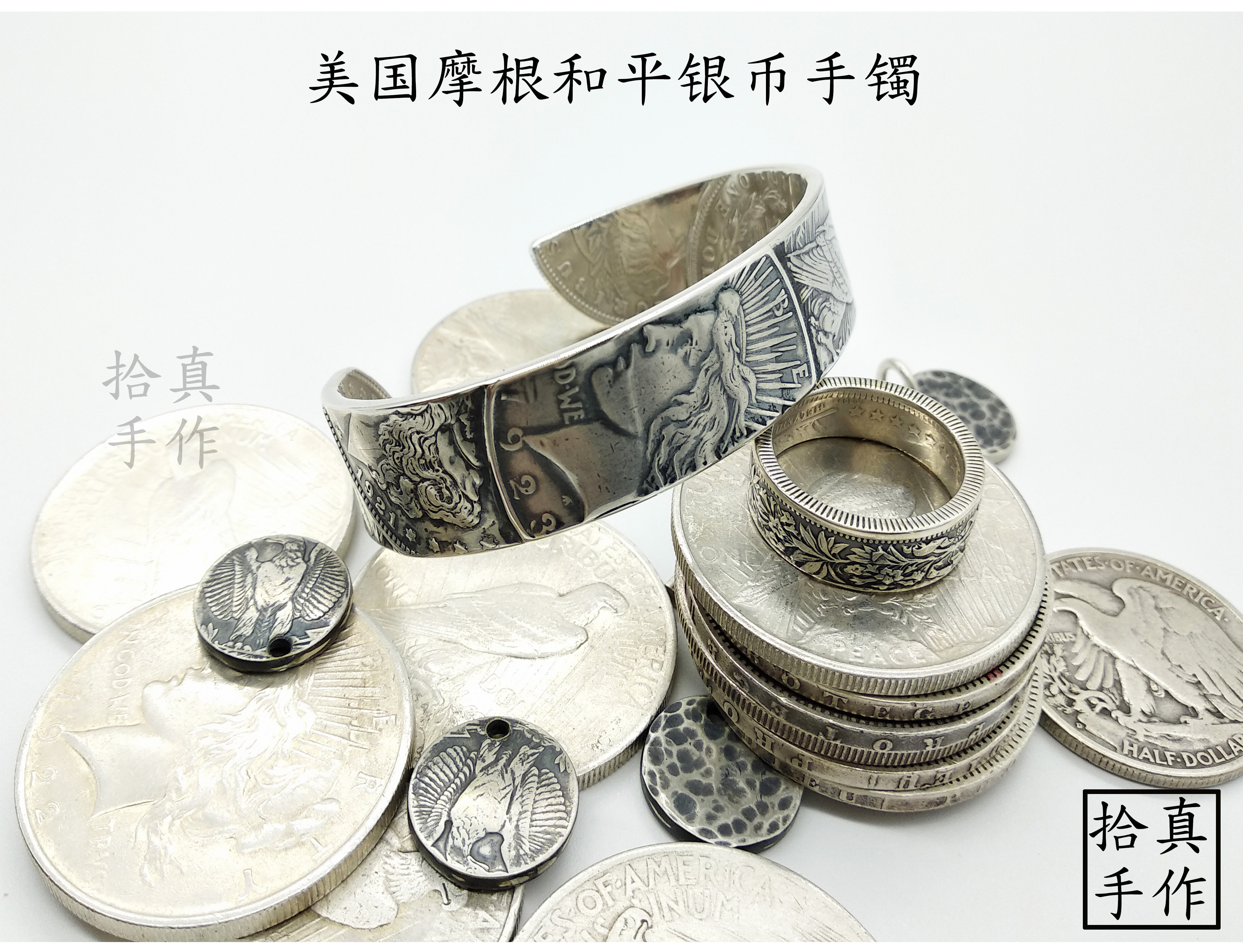 Non-North Works Silver coin bracelet Morgan Silver coin Peace Silver coin Composition Morgan Silver coin Customize
