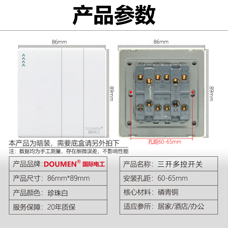 International electrician 86 type concealed switch socket panel package household white three-open multi-control midway switch