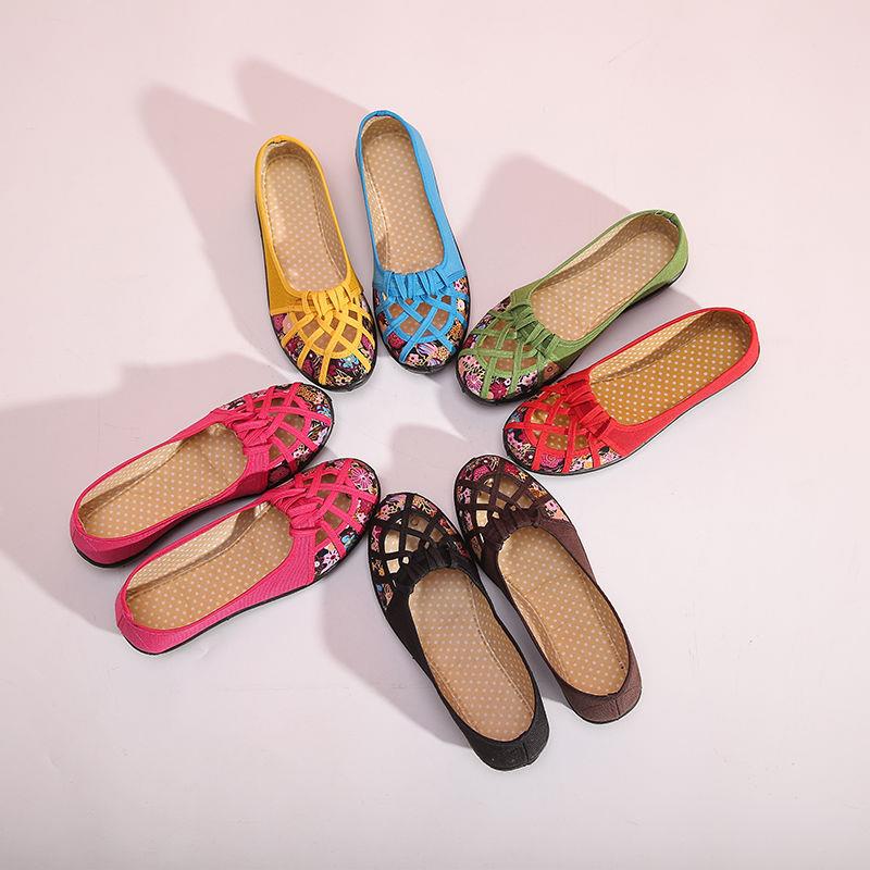 Summer and autumn old Beijing cloth shoes women's net shoes single shoes hollow non-slip soft bottom middle-aged and elderly mother's shoes slip-on sandals women