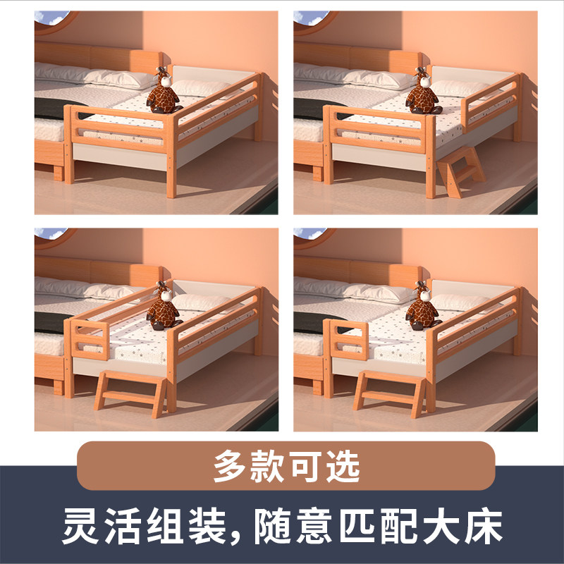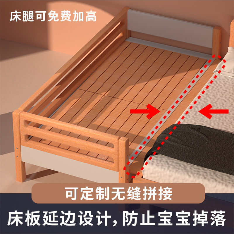 Custom solid wood children's bed with guardrail Baby baby small bed splicing large bed Yanbian widening artifact boy Beech