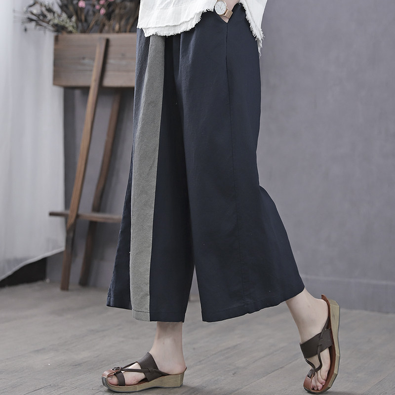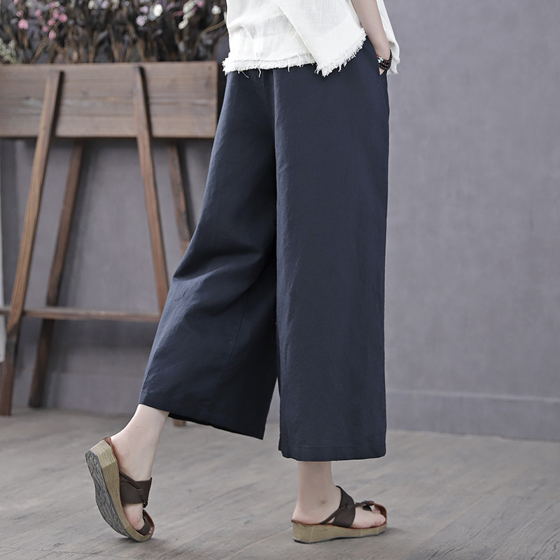 Han Soyi Retro Art Spring Summer Thin Cotton Linen Casual Pants Woman Loose 70% Straight Drum Pants Parquet Color Broadlegged Pants