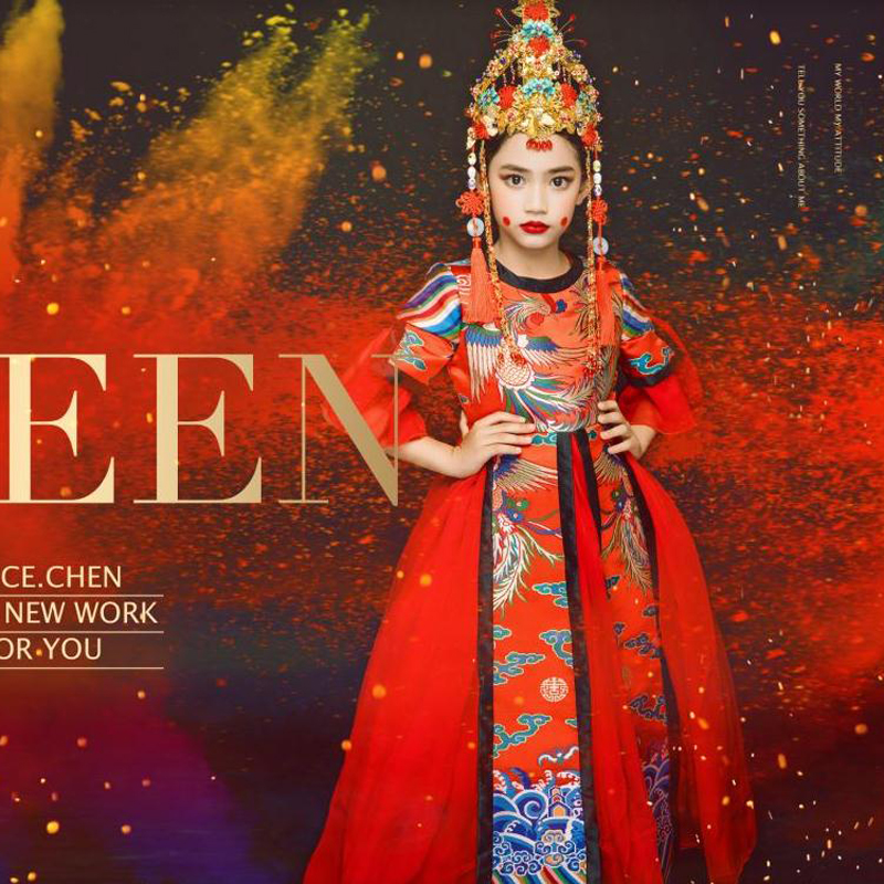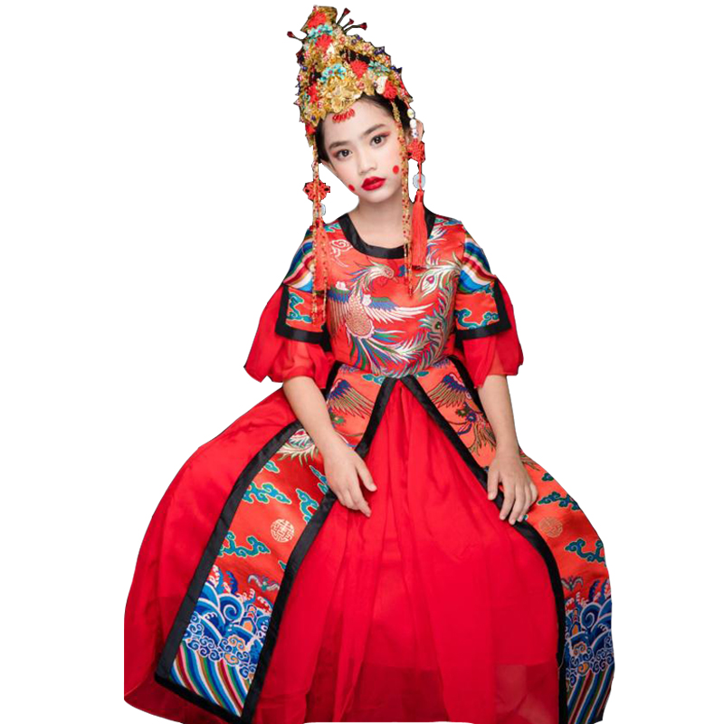 Hire Children China Wind Gown Rental Girl Models Competition Finals Country Tide Phoenix Crown Xia Cape GC35