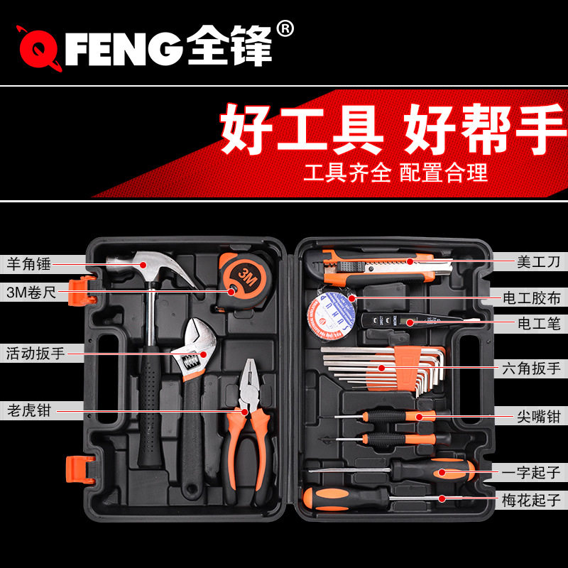 Full Front Home 19 Piece Set Of Combination Tool Set Wrench Vise Hammer Woodworking Toolbox Electrician Repair