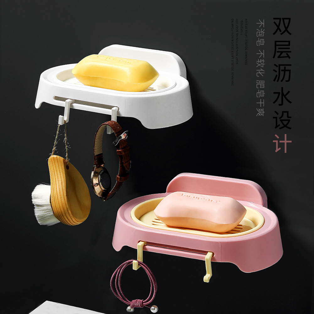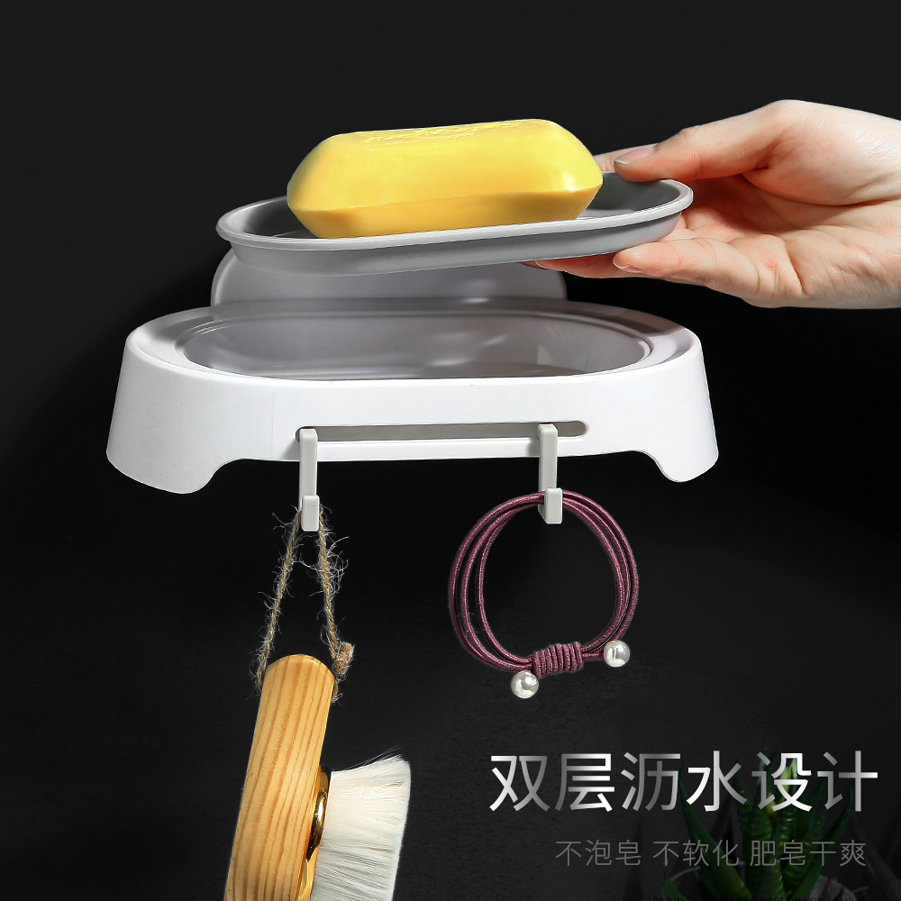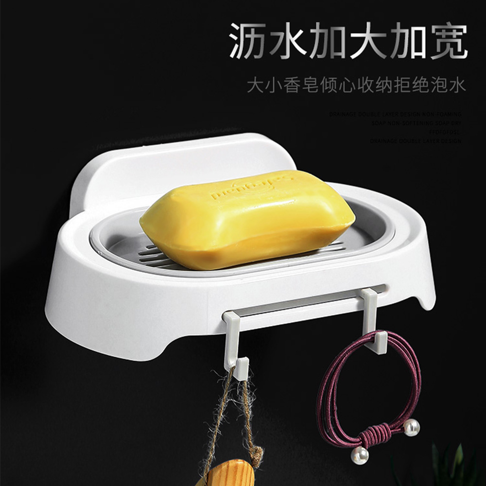 Free Punch Soapbox Suction Cup Wall-mounted Creative Double home Makeup Room Soap Box Drain Soap Box Rack