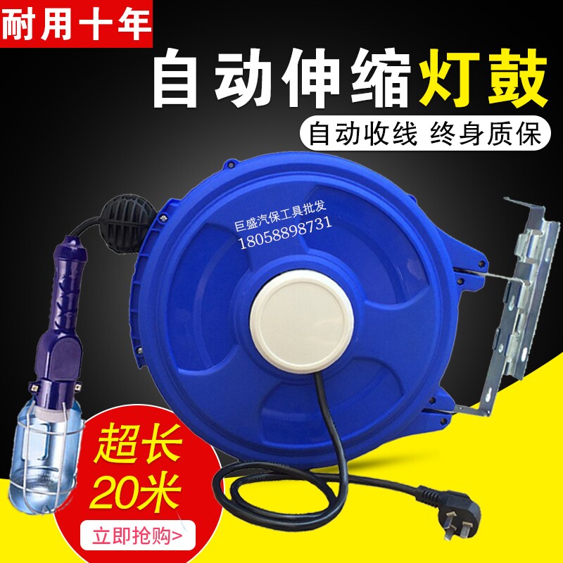 Lamp Drum Automatic Telescopic Recycling Reel Pipe Winder Electronic Drum Line Drum Car Repair Steam Repair Work Light Drum 20 m