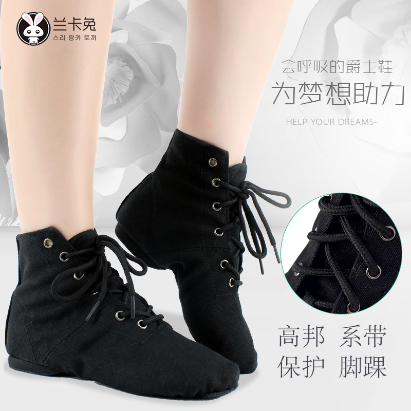 Children's adult black jazz dance shoes soft-soled exercise shoes men and women high-top low-top canvas jazz boots modern dance shoes