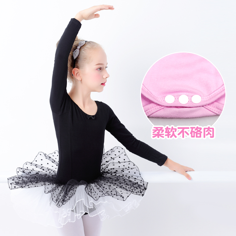 Child Fluffy Skirt Dance Suit Girl Spring Long Sleeve Yarn Dress Rehearsal For Princess Performance Test Ballet Dresses