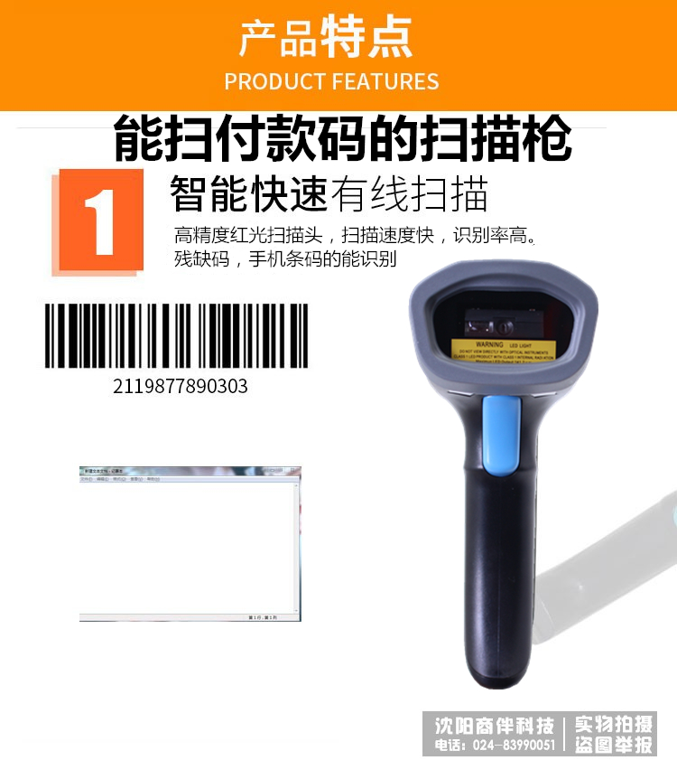 Scan Gun Barcode Machine Wired one-dimensional red-light payment code Code Code Code Gun