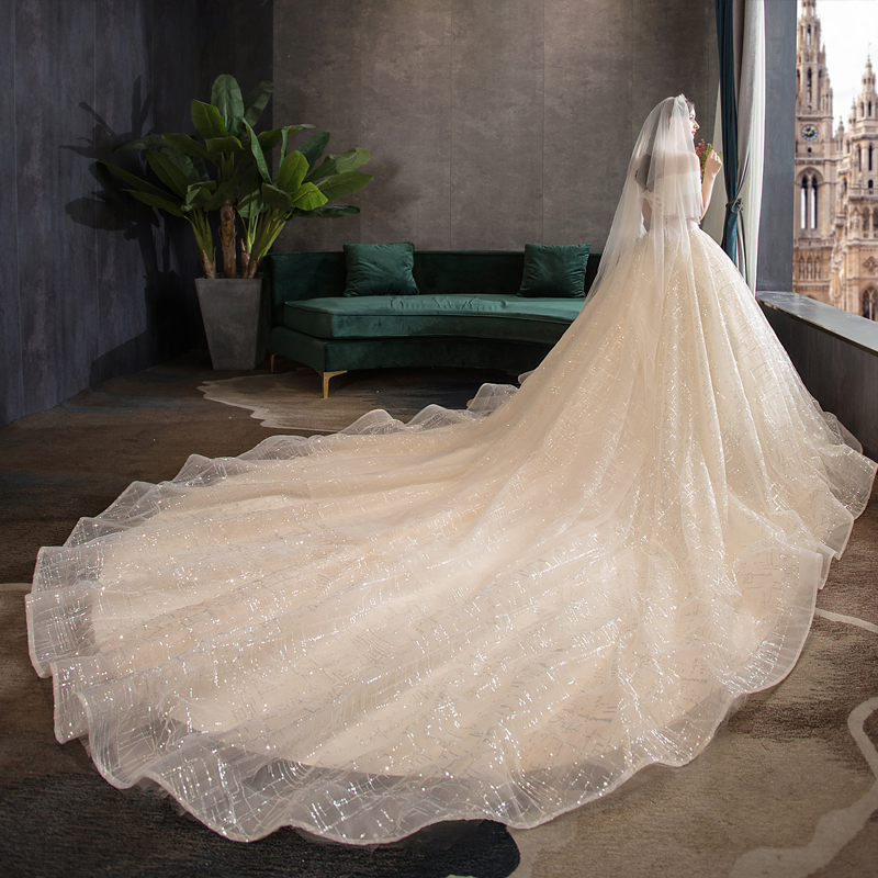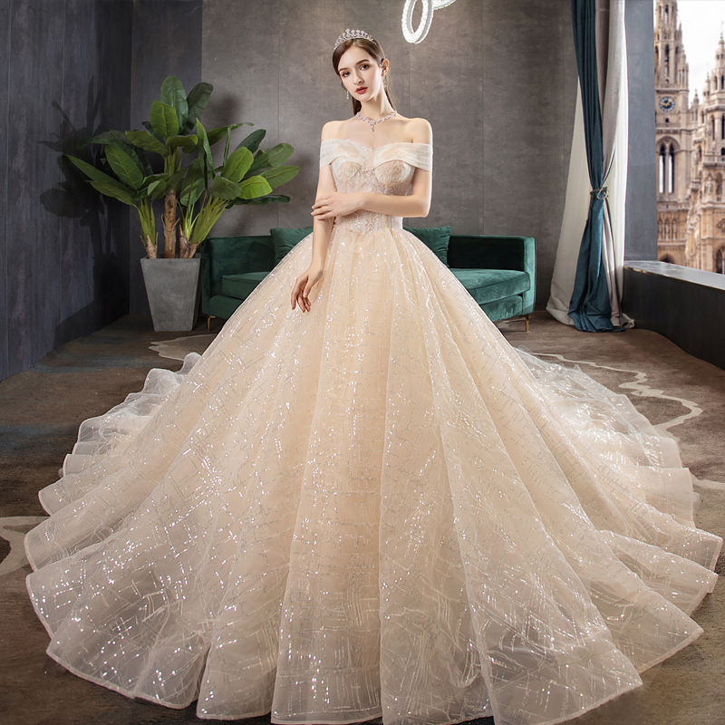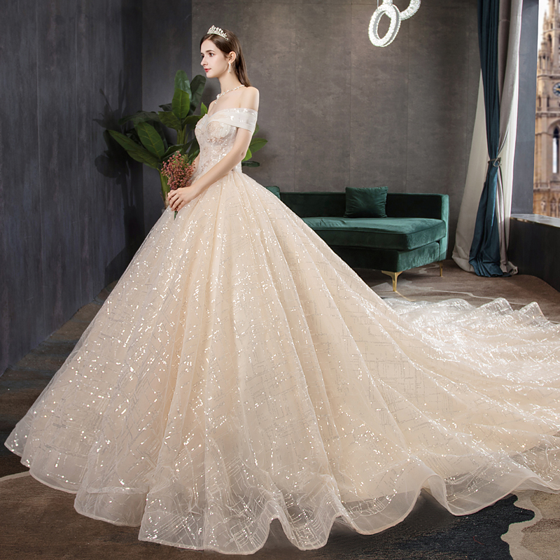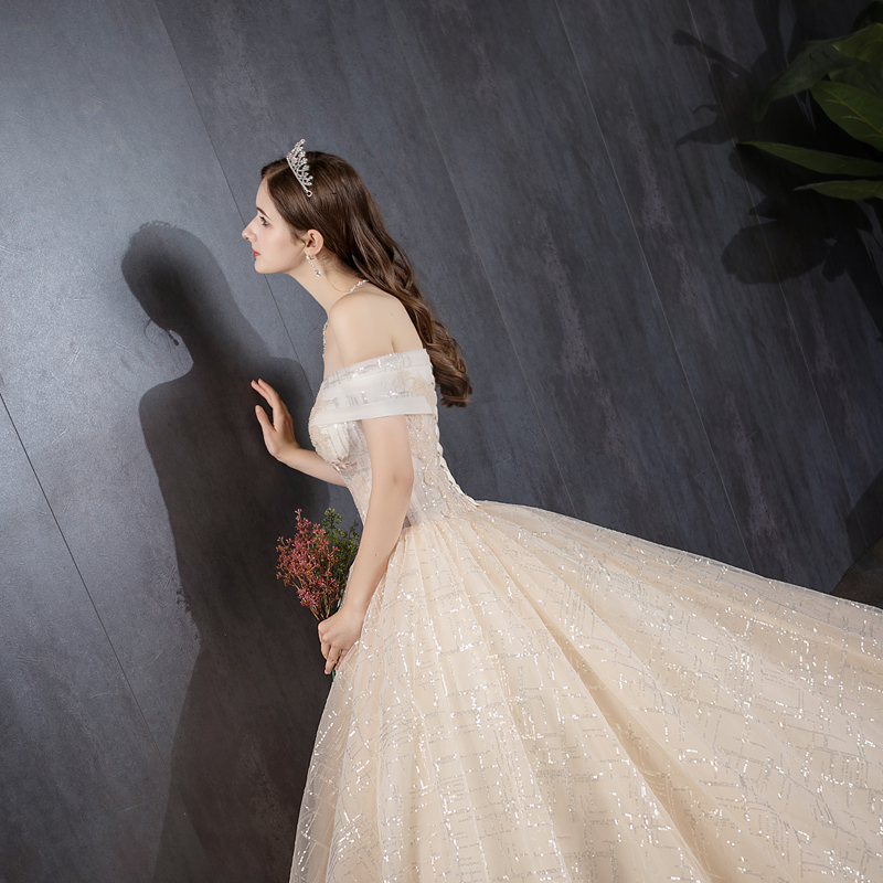 Wedding dress 2022 new bride one-shoulder thin palace long tail Hepburn star forest series net red vibrato