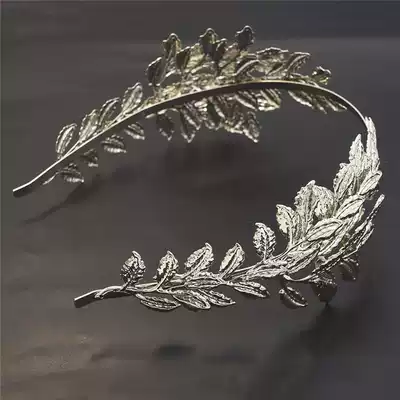 Rear-mounted golden metal hair band leaf bride headdress hair accessory fairy hair hoop Super fairy hair hairclip