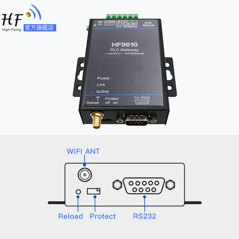 Serial port network interface to wifi Ethernet transparent transmission equipment PLC remote control download monitoring module HF-9610