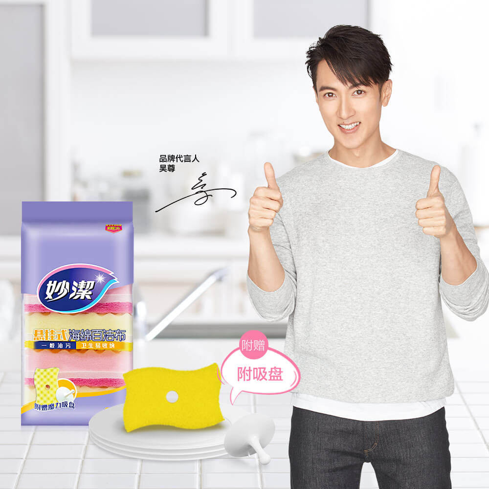 Miaojie Baijie cloth hanging type 5 pieces of dishwashing cloth kitchen dishcloth to remove oil stains washing dishwashing sponge wipe kitchen artifacts