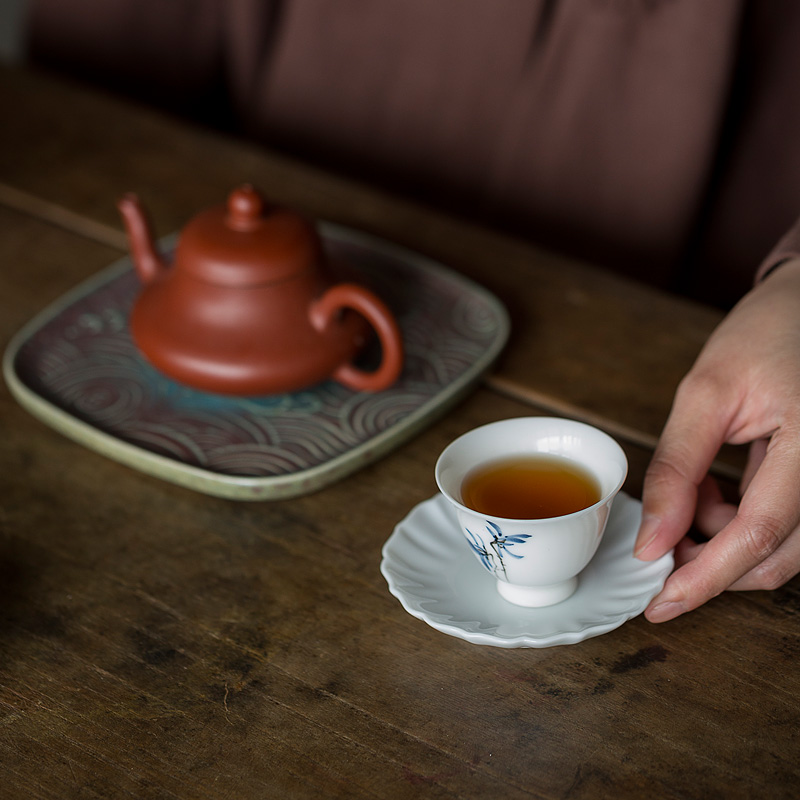 Japanese-style ceramic tea coaster household cup Toddized white porcelain base creative tea tray anti-scalding heat insulation pad tea set accessories