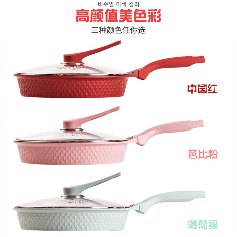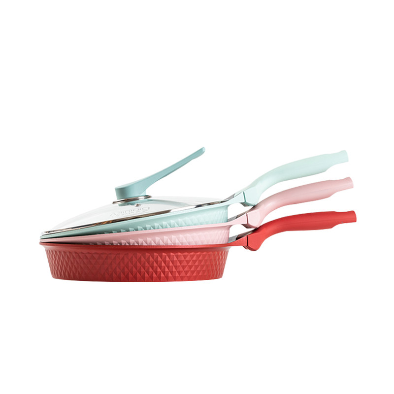 Diamond style Barbie powder 28CM flat-bottomed frying pan Diamonds Chinese red 28CM flat-bottomed frying pan Diamonds mint green 28CM flat-bottomed frying pan