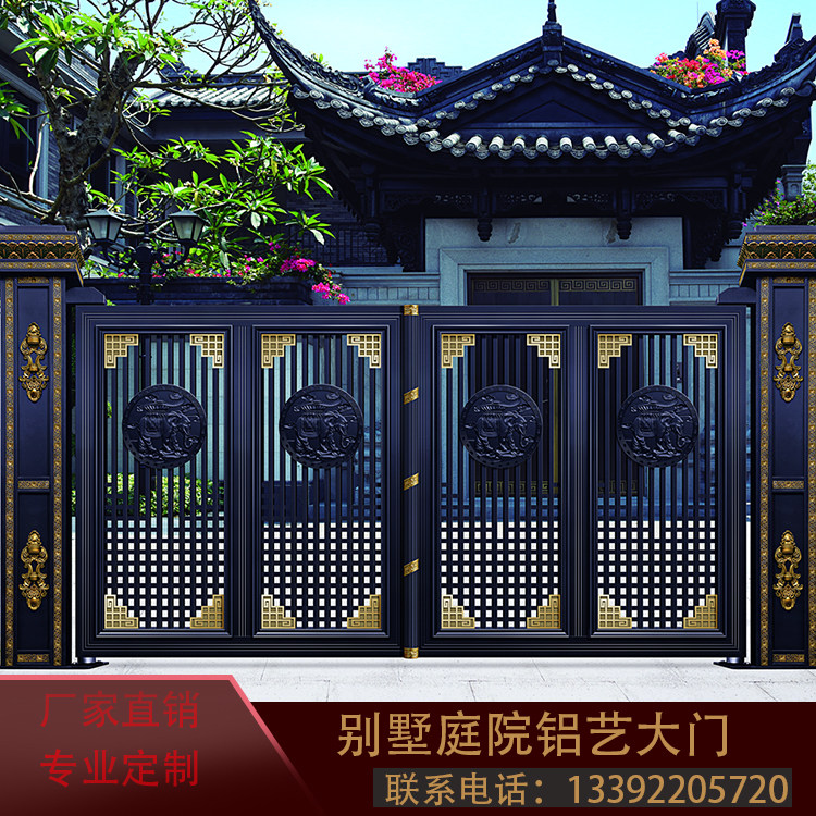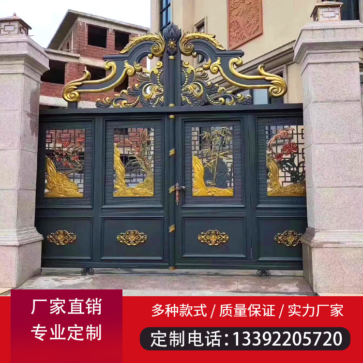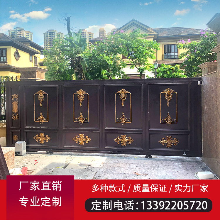 Manufacturers custom aluminum art villa courtyard electric folding gate aluminum alloy outdoor suspension translation aluminum carving door European style