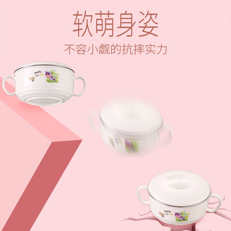 304 stainless steel bowl household with double insulation and hot burning baby food anti - wrestling bowl with children to eat a job