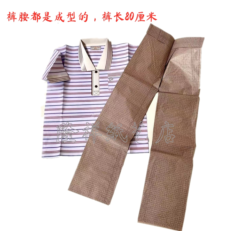 Sacrificial burning paper men's shirt T-shirt full set of dead people's supplies clothes pants burning seven Qingming July half winter clothes festival
