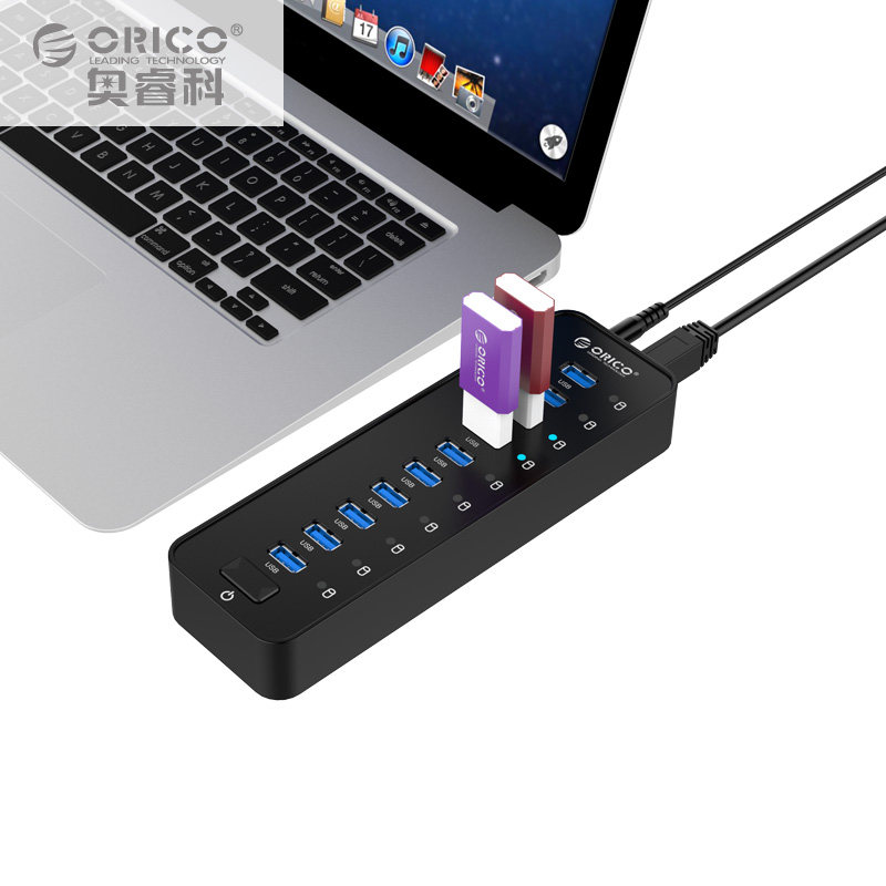 Orico Aruico 10-Port USB3 0 extension cable industrial-grade HUB multi-interface high-speed expansion power supply HUB with switch group control with power supply multi-port charging