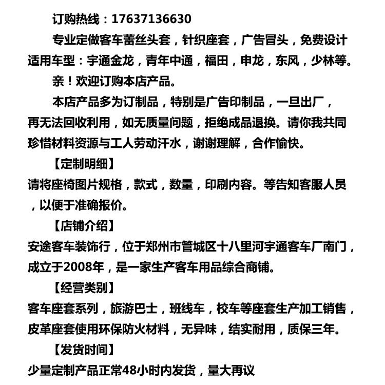 Yutong bus emerges custom-made car advertising bus seat cover thickened lace emerges Coster Jinlong Haige