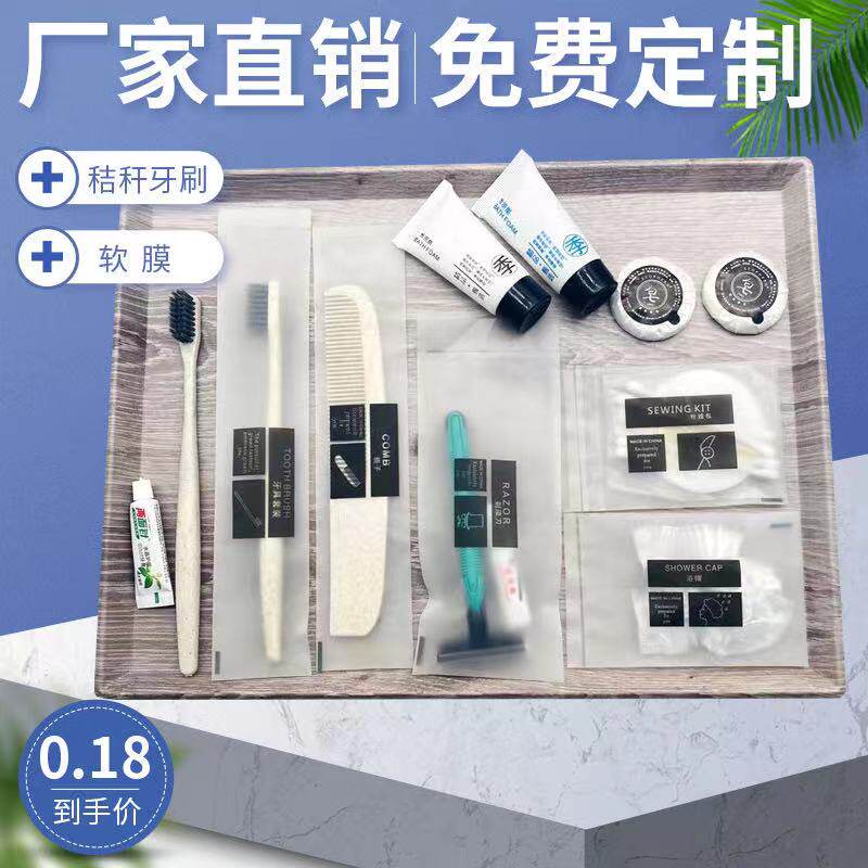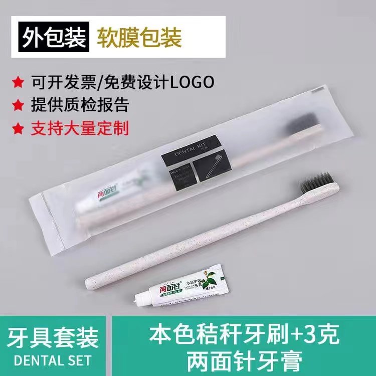 Disposable straw soft bristle toothbrush two-sided needle toothpaste hotel special soft film packaging dental appliances hotel supplies