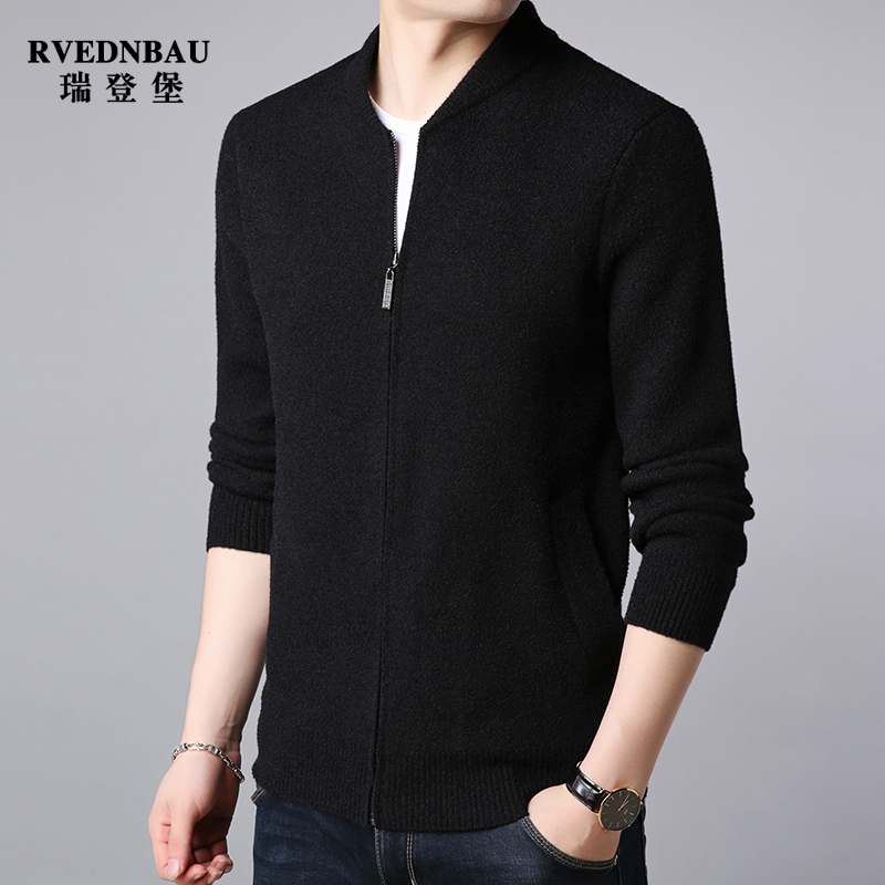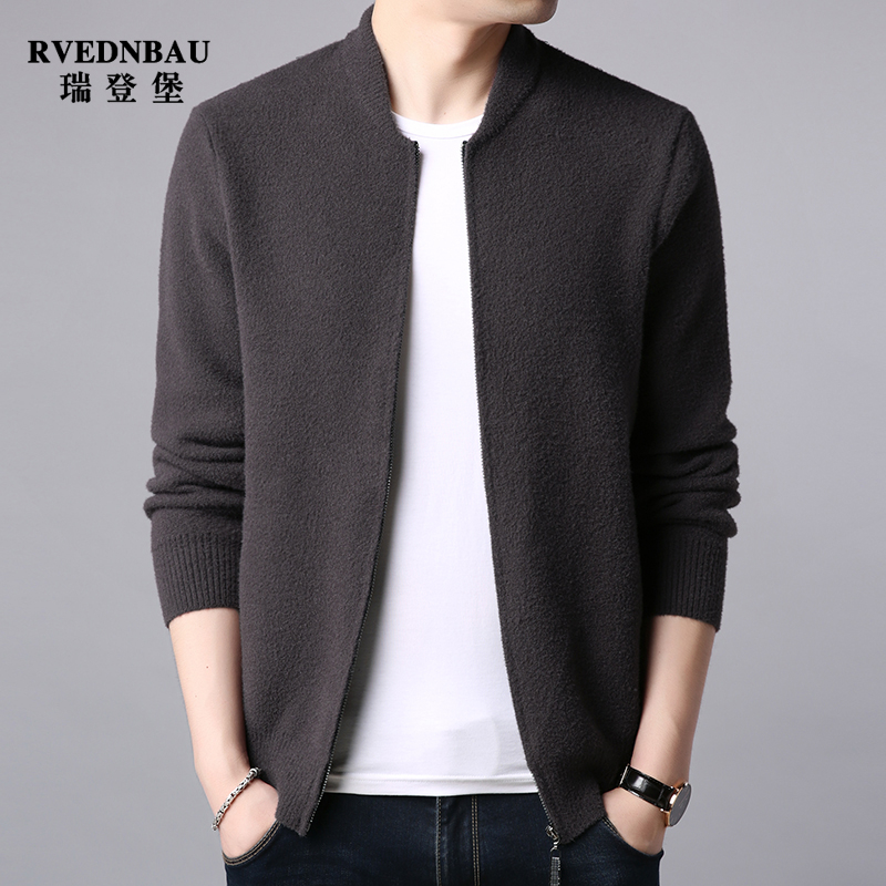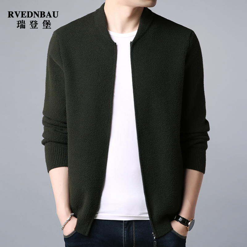Autumn and winter men's baseball collar cardigan thickened sweater jacket trend Korean version of men's knitwear outside with sweater