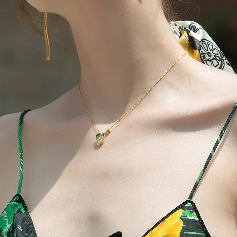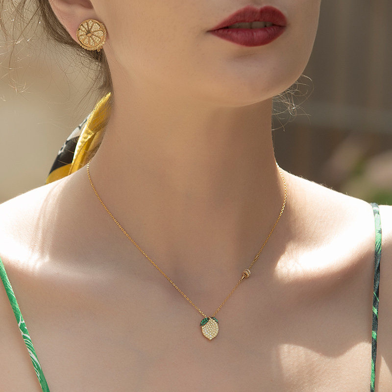 HEFANG HO FANG JEWELRY LEMON COLLAR CHAIN 925 STERLING SILVER MAIDEN INS DESIGN SENSE FRUIT SWEATER CHAIN NECKLACE