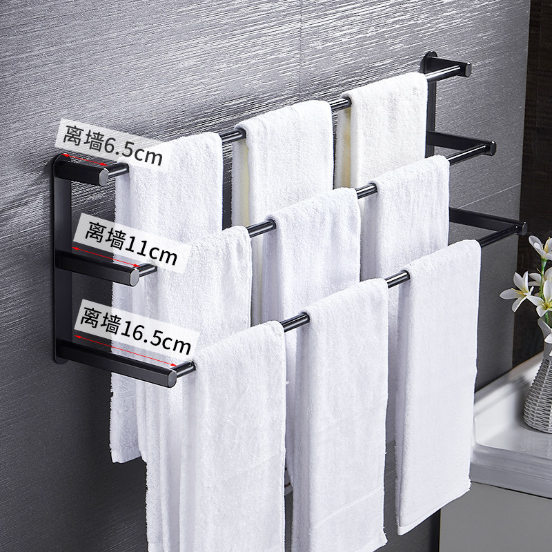 Powder room towel rack free punching bathroom towel creative simple wall hanging kitchen space aluminum shelf