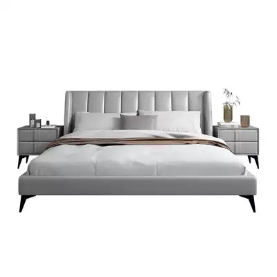 Modern leather bed master bedroom double bed Nordic simple 1 8 meters Net red bed light luxury 1 5 meters minimalist bedroom wedding bed