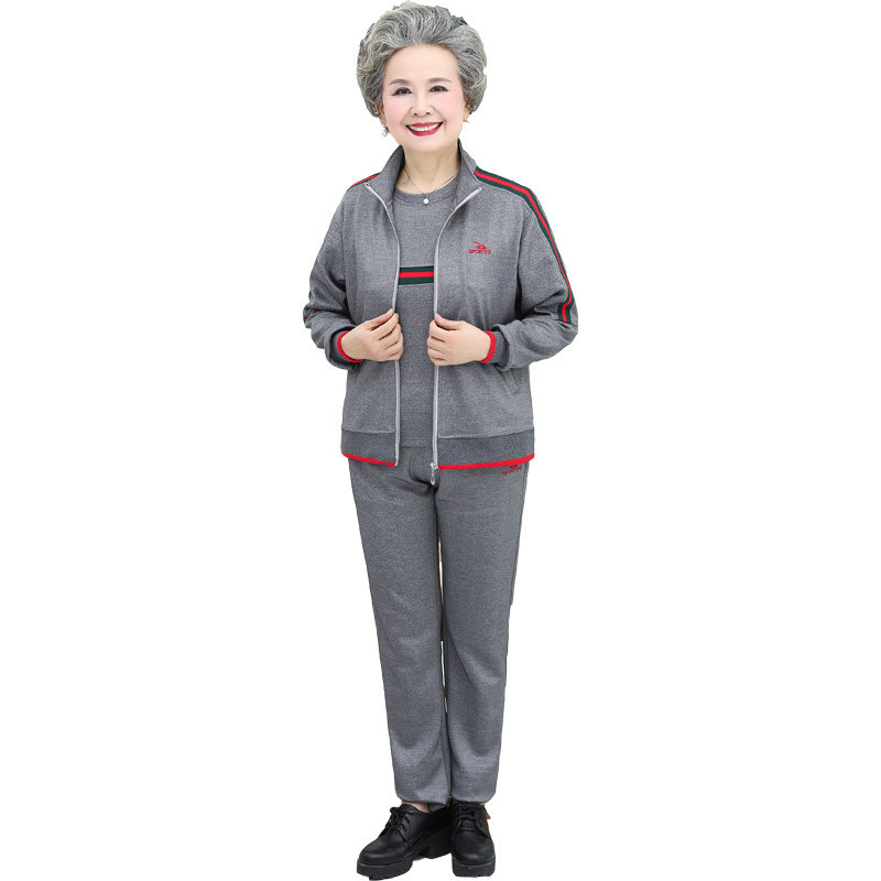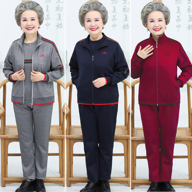 Middle-aged and elderly female Spring and autumn elderly mother 60-70-year-old Mrs. Grandma Leisure Sports Clothing Suit Three Sets