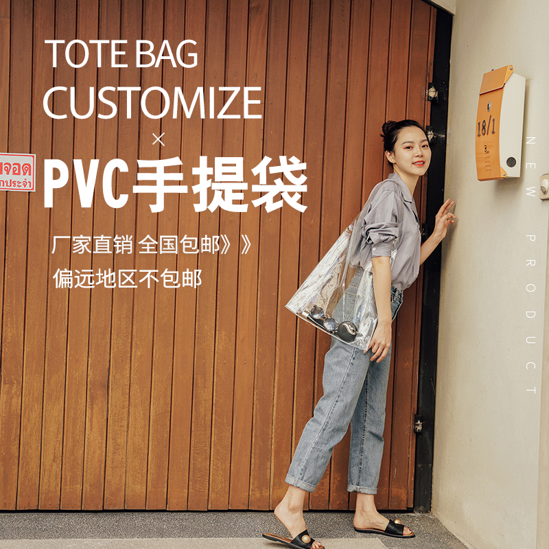 Transparent bag PVC handheld plastic in clothing shopping activities advertising gift bag custom logo