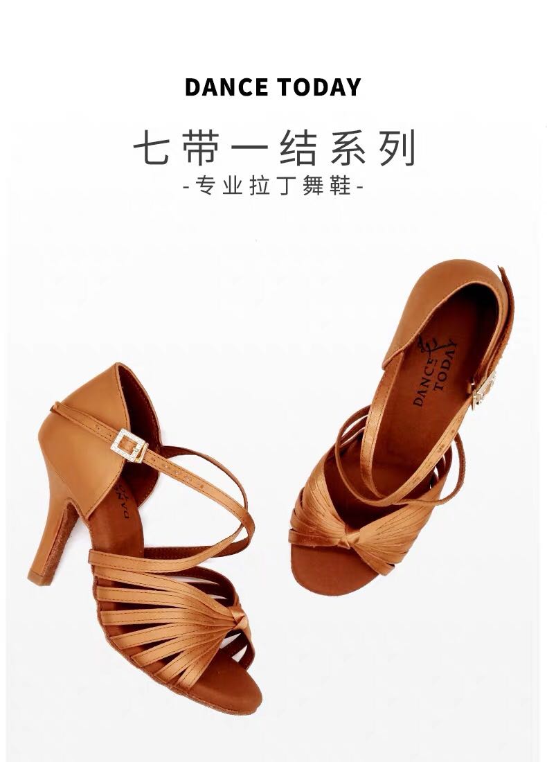 DanceToday Canadian professional Latin dance shoes with seven belts and one knot adult soft thick-soled comfortable competition dance shoes