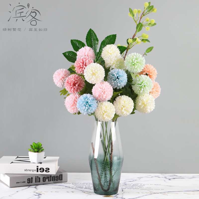 Simulation hydrangea single rose bouquet living room decoration dry flower fake flower silk flower dandelion flower arrangement ornament vase
