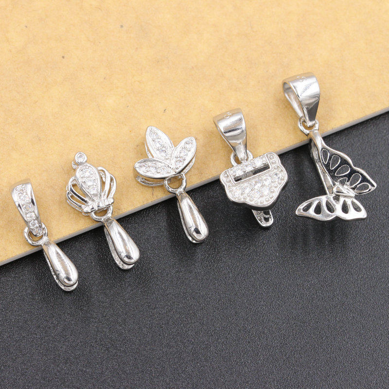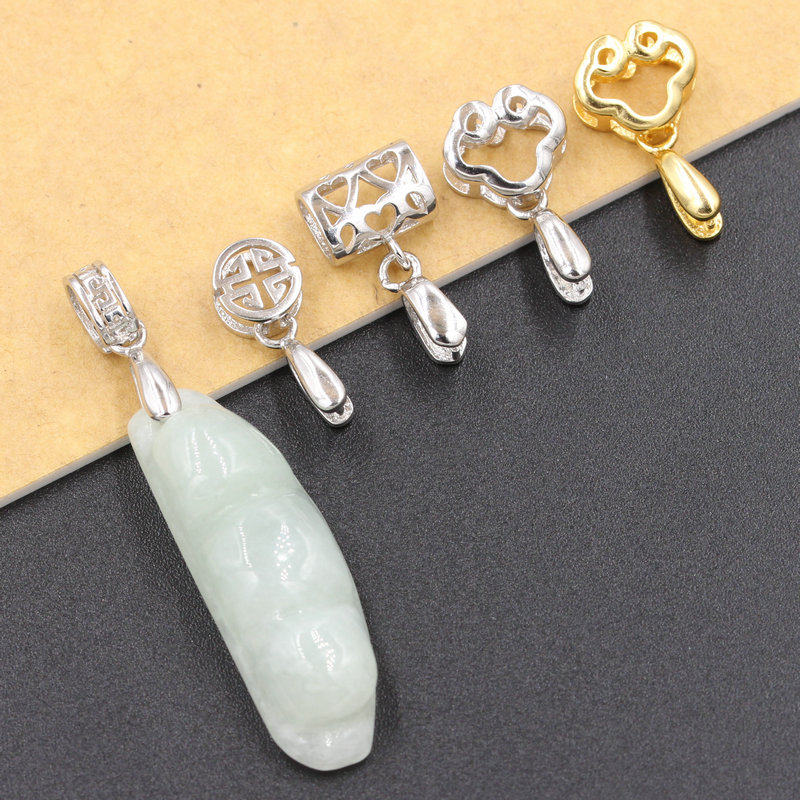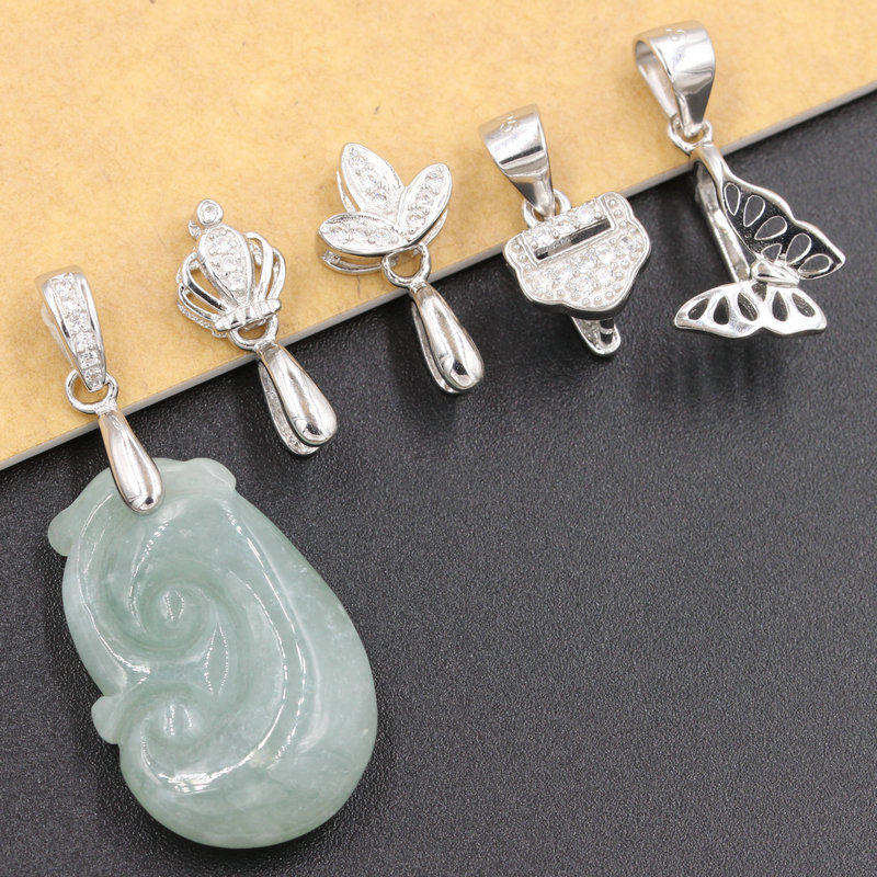 s925 Pure Silver Jade Clip Buckle Accessories GREEN BUCKLE PENDANT MELON Leather Strap Head Emerald Jade Ware Crystal Clip Button Necklace Clasp