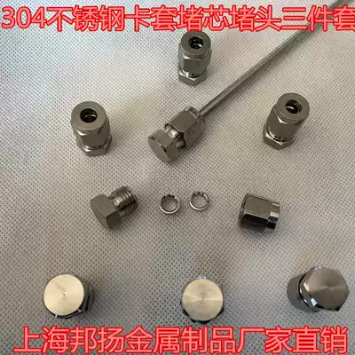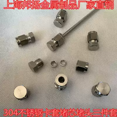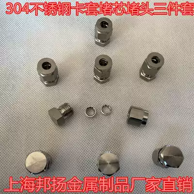 304 stainless steel card sleeve blocking plug three-piece set 1 8 1 4 card sleeve connector pipe plug double collar stuffed head 3 6 8 10