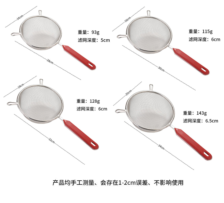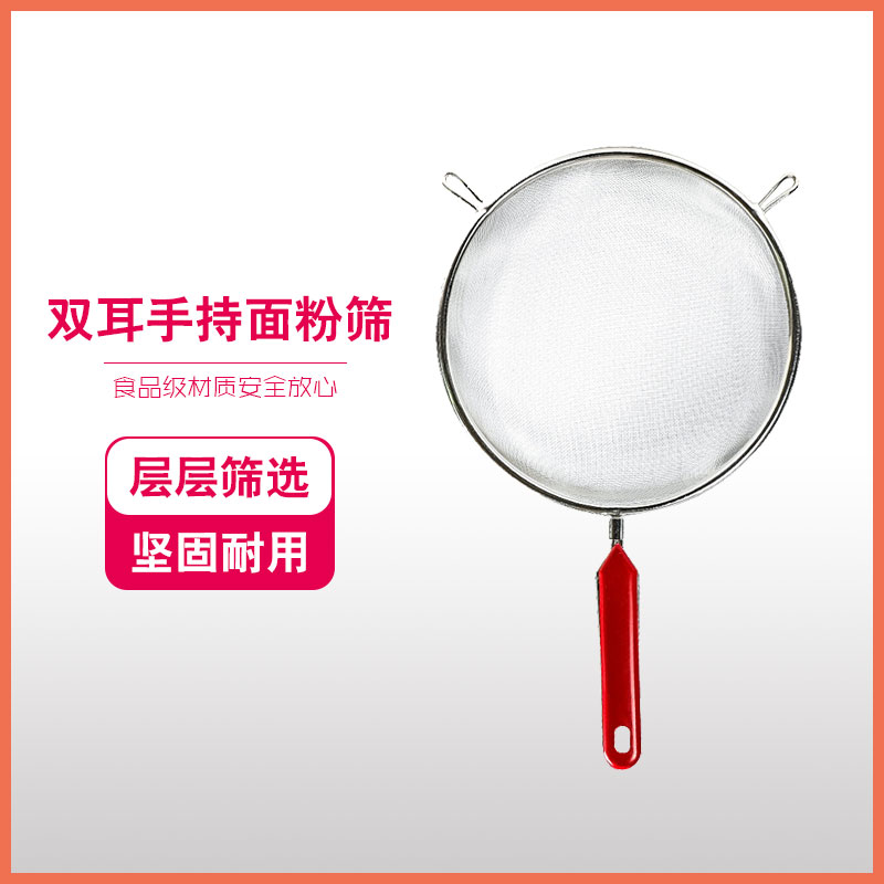 Flour sieve 304 stainless steel sieve powder sugar fine filter hand-held noodle sample sieve baking tool household