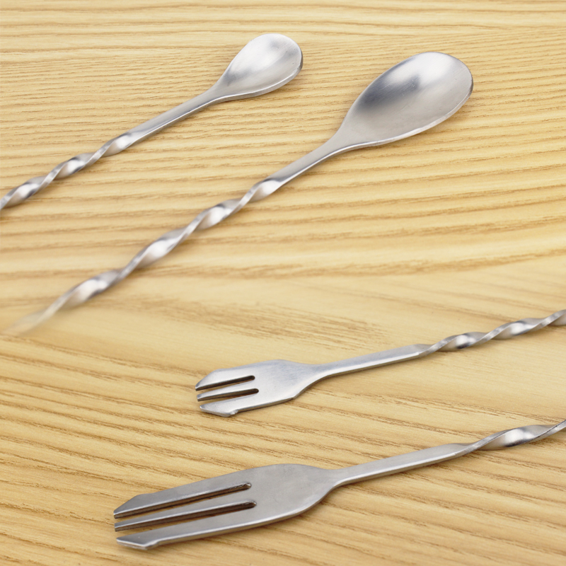 Stainless steel long bar spoon 32cm stirring rod cocktail bar mixing stick coffee milk tea stirring spoon spiral bar more bar spoon