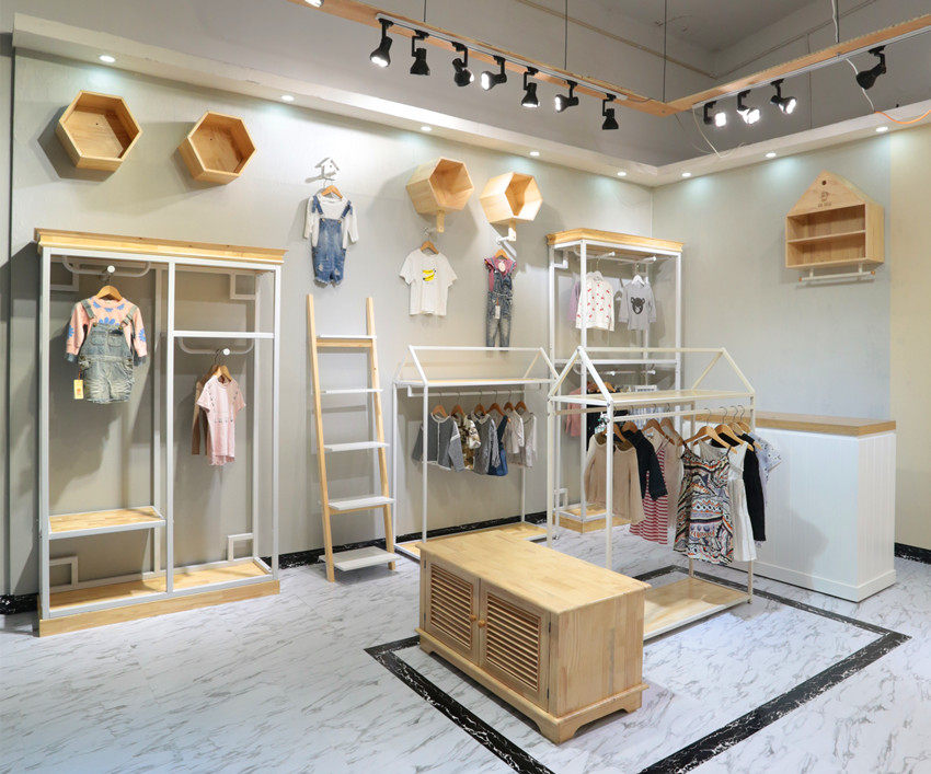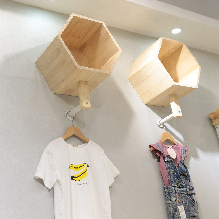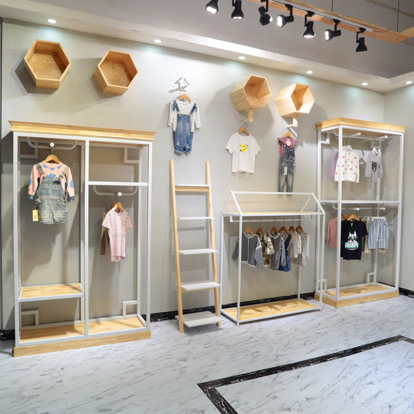Clothing store hanger display stand solid wood white children's clothing men's and women's clothing floor stand against the wall in the island rack on the wall is hanging on the side