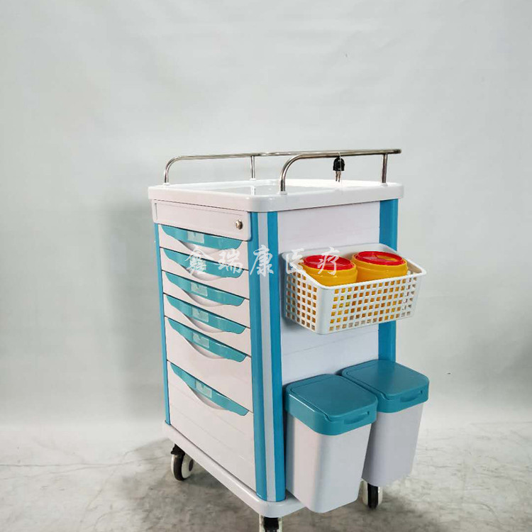 Medical six-drawer treatment cart Six-layer oral medicine cart Green medicine delivery cart 96-grid dispensing cart