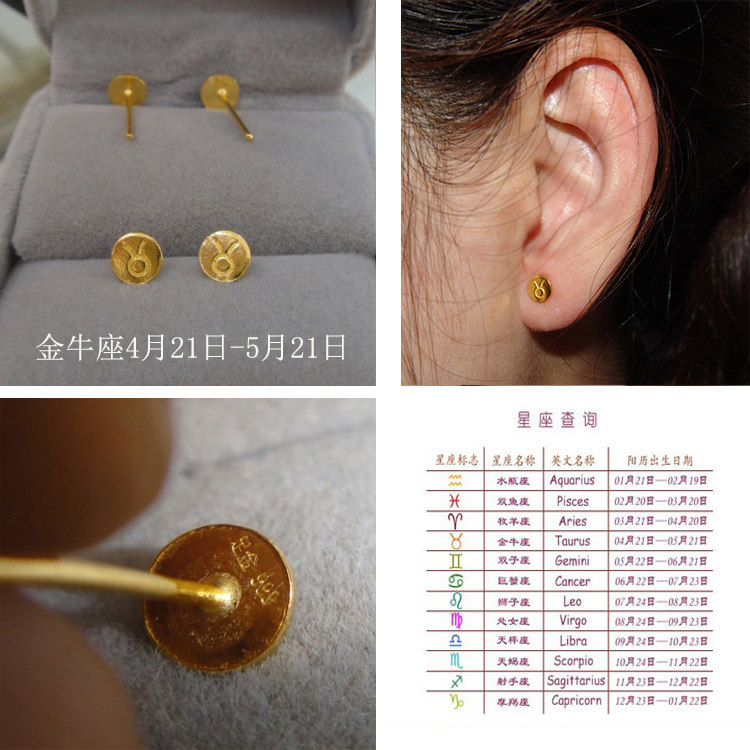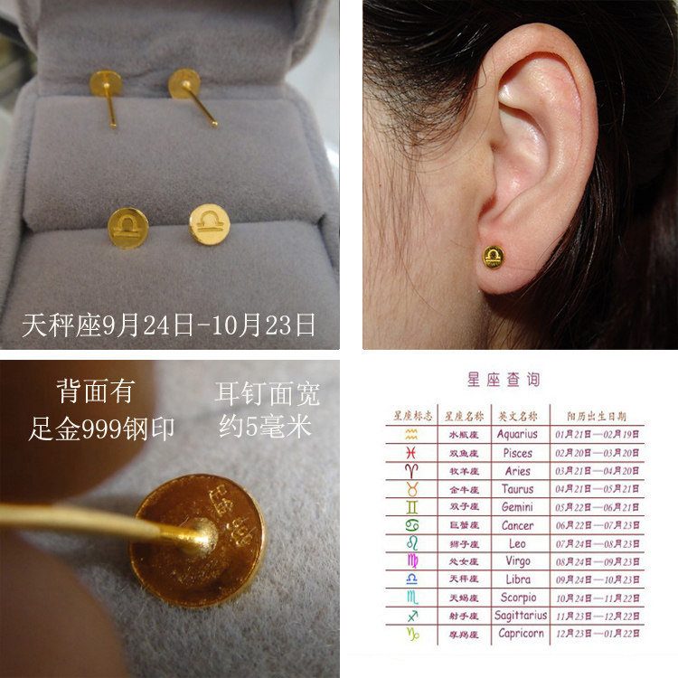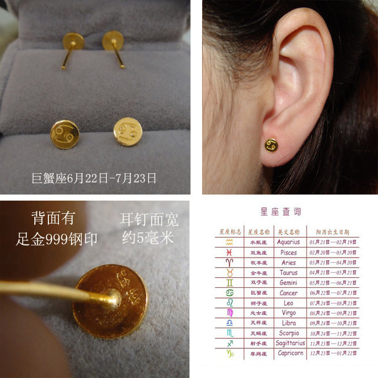 Gold constellation earrings 999 pure gold libra pure gold Taurus earrings couple men and women cancer earrings