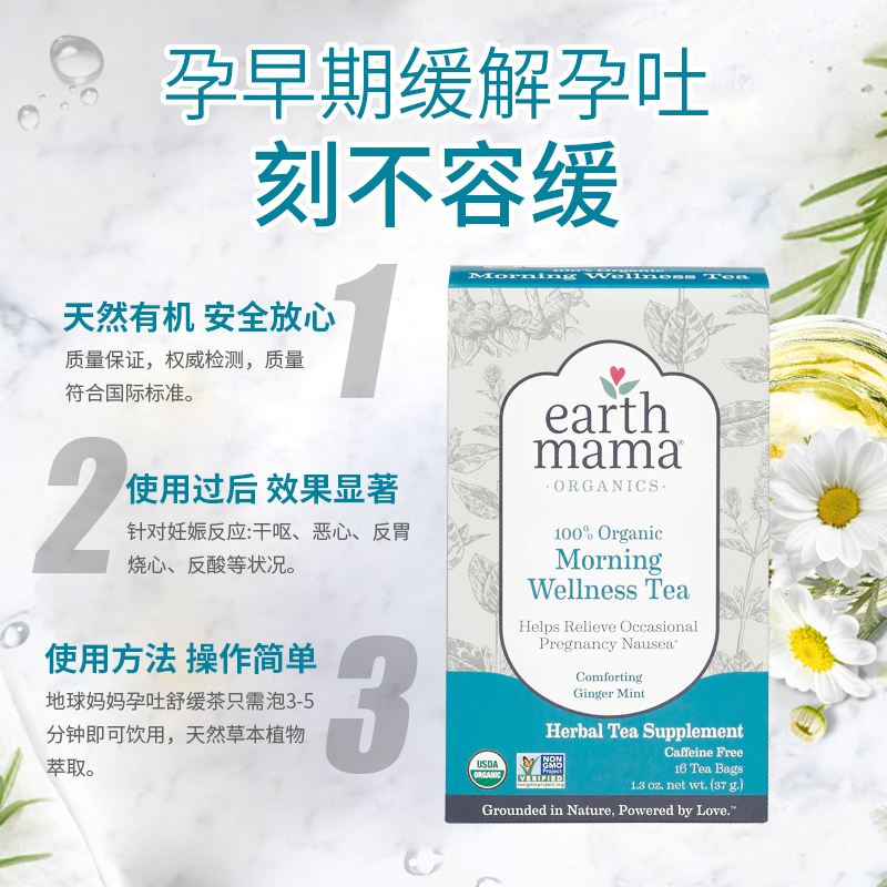 American Earth Mama Earth mother morning soothing tea to relieve heartburn, morning sickness, nausea and retching 16 bags box