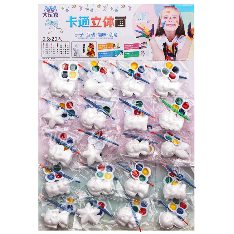 Children Gift Diy Solid Watercolor Painting Upper Color Foam Painting Mold Cartoon Model Pen Paint Painted Color Painting